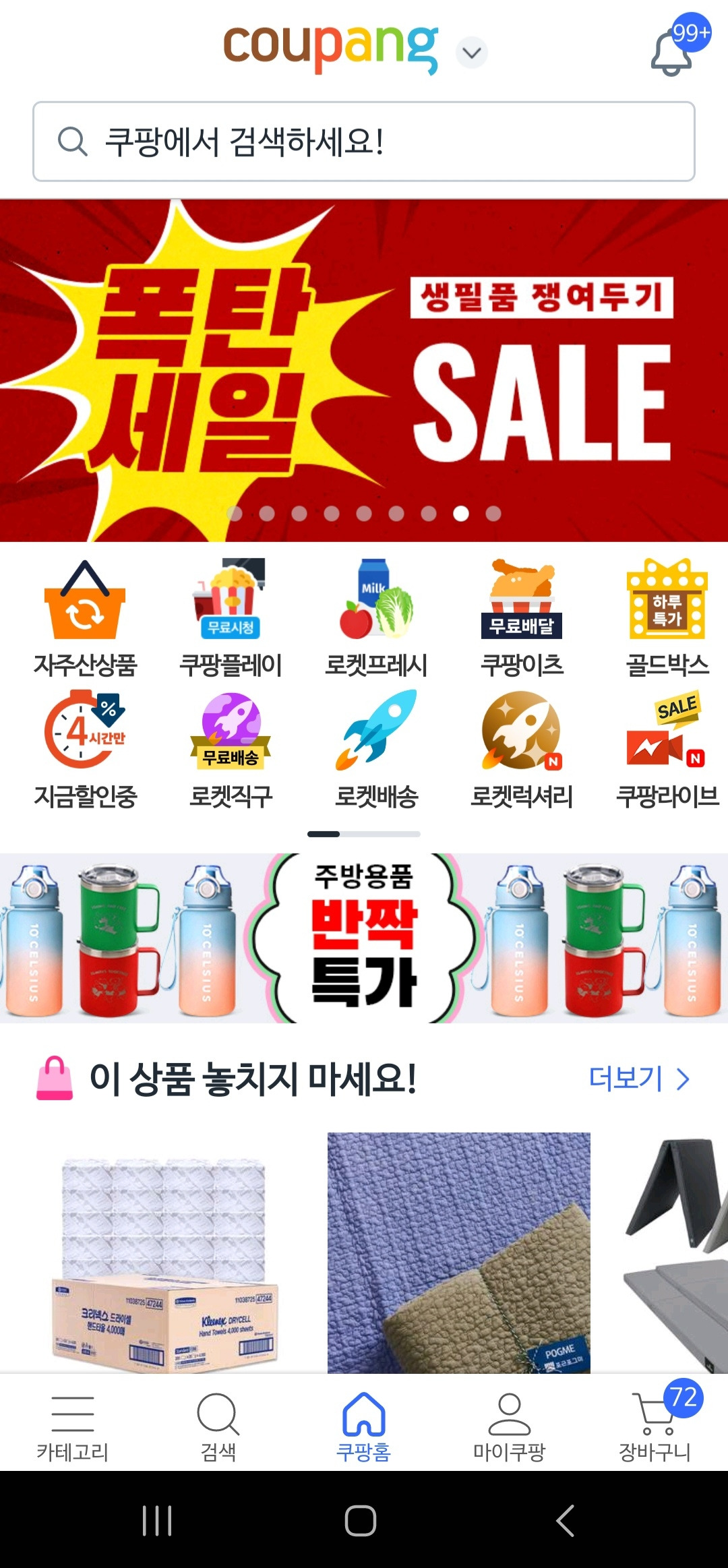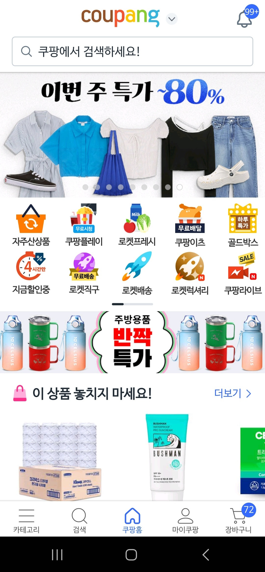 가격 인상을 발표한 이후 유독 행사가 자주 눈에 띄는 건 느낌 탓일까요. 최근 쿠팡에 들어가면 상당히 높은 할인율을 강조하는 행사들이 많이 보입니다. (실상은 그만큼의 할인율이 아니더라도요)