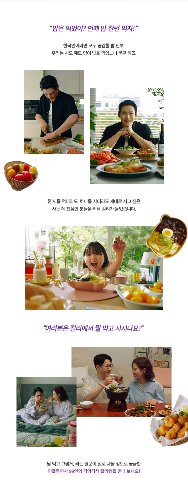 유명 인플루언서와 셰프들이 참여해 그들의 식단과 요리법을 소개해 주는 부분이 특징이죠. 예를 들어, 배우 유태오도 이 캠페인에 등장하며, 유태오의 컬리템을 소개해요.
