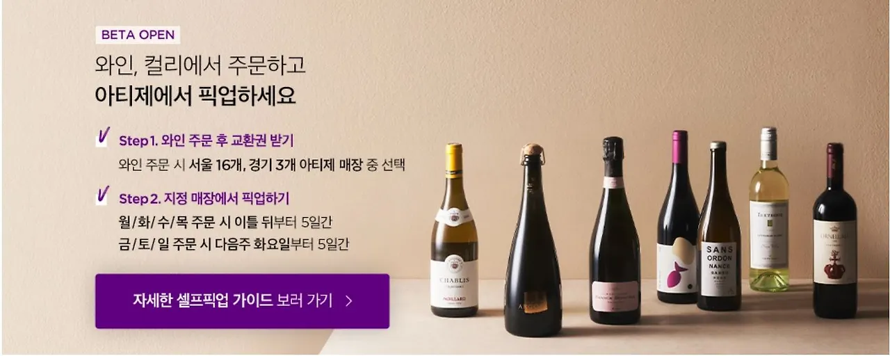 현재 마켓컬리는 와인 주문 후, 아티제 매장에서 픽업할 수 있는 서비스를 진행하고 있습니다. 오프라인 마켓컬리 역시, 픽업 서비스를 강화하지 않을까요?