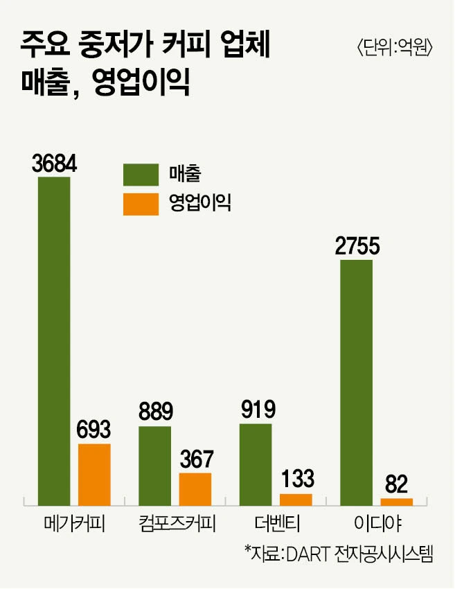 3️⃣ 그중에도 단연 눈에 띄는 건 메가커피와 컴포즈커피!