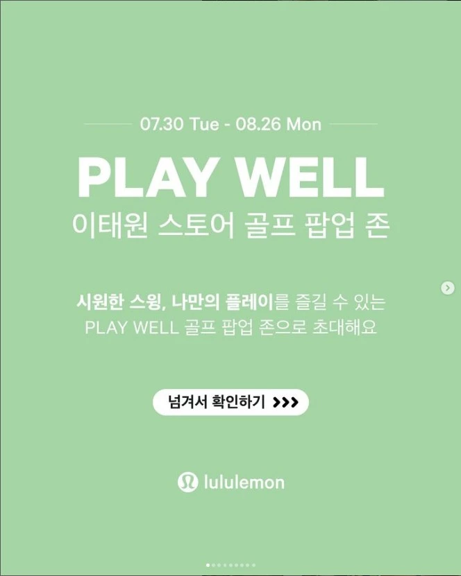 이태원 룰루레몬 플래그십 스토어에서는 골프 컬렉션 출시를 맞이해 골프 팝업존을 진행하고 있어요. '체험 마케팅'의 일환으로, 스코어 챌린지와 원포인트 레슨까지 진행하며 골프를 좋아하는 분들의 많은 관심을 유도하고 있어요.