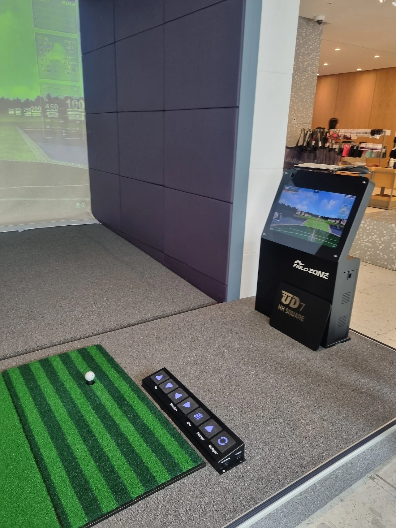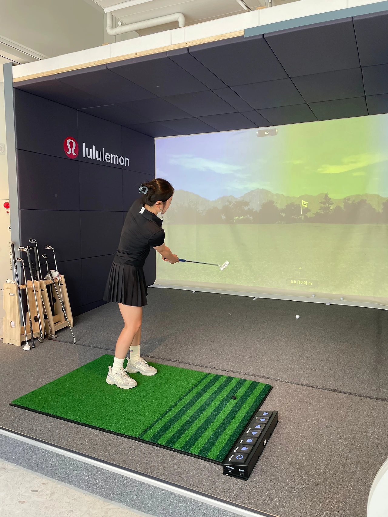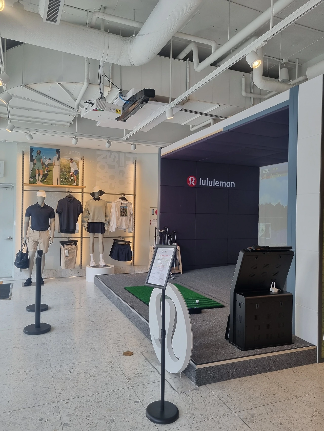 룰루레몬은 입장하자마자 바로 보이는 골든존에 스크린골프를 설치해 입장하는 모든 사람들에게 '룰루레몬이 골프도 한다'라고 알리고 있죠.