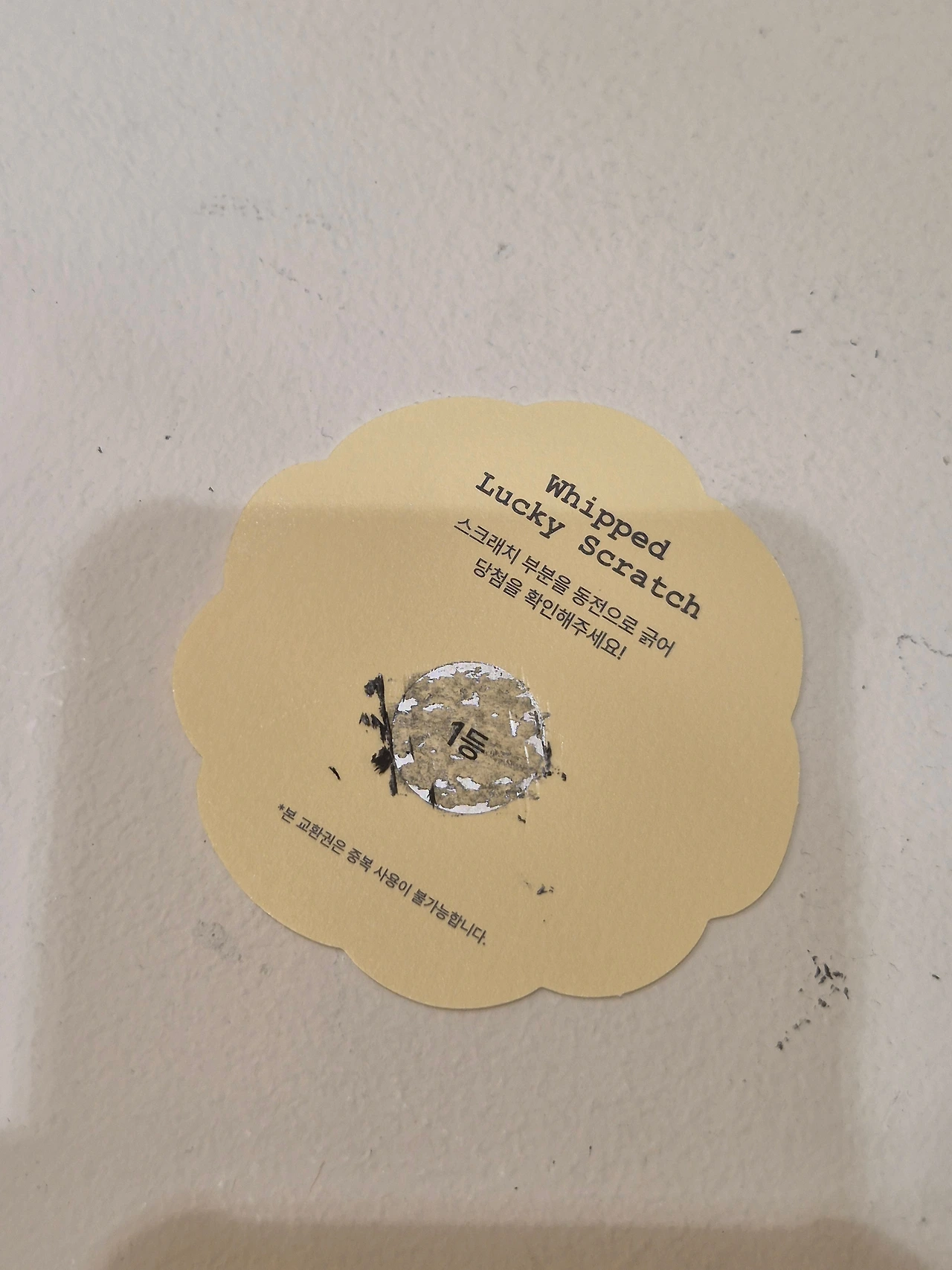 퇴근하다가 휩드 팝업스토어에 들러 경품행사에 참여했는데 무려 1등이 되었지 모예요.