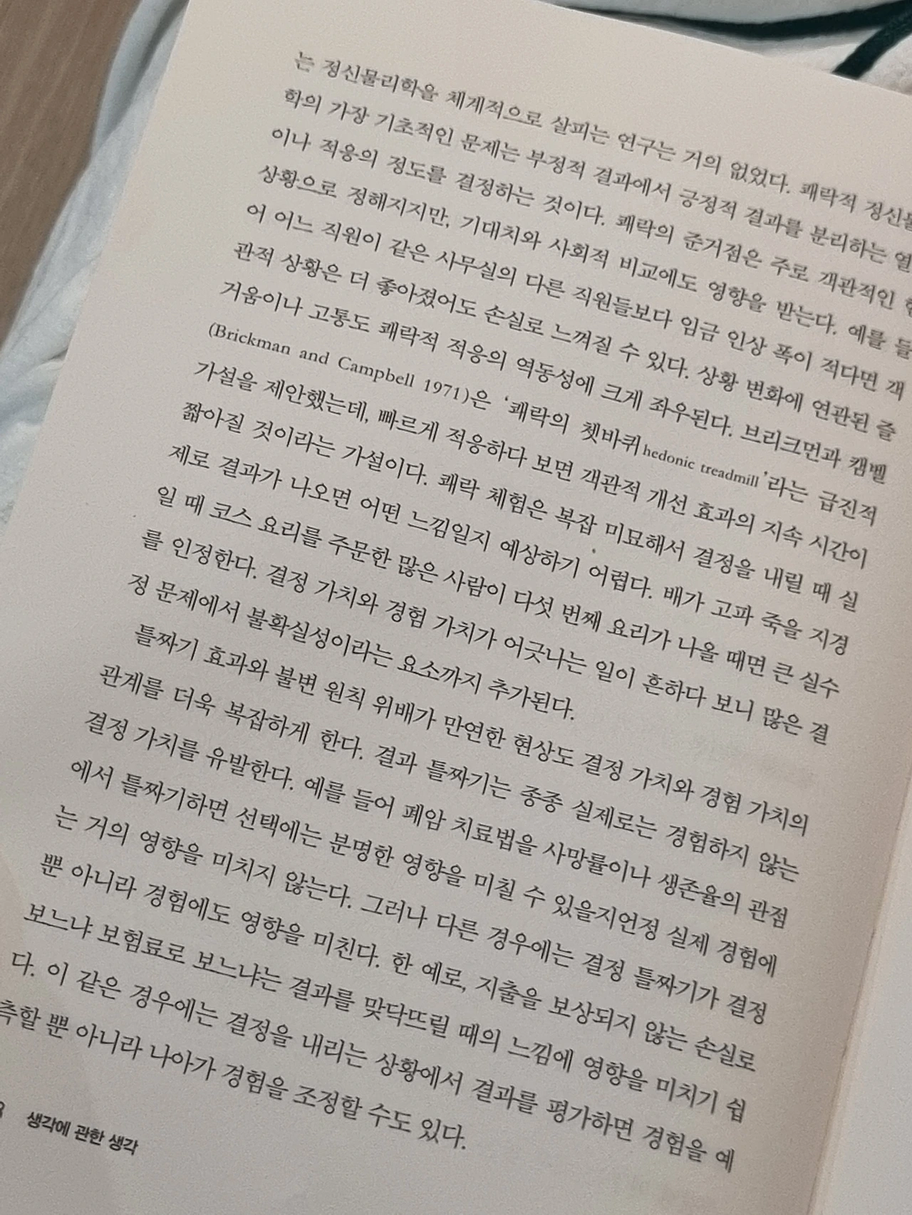 *주목 착각(focusing illusion) : 지금 삶에서 무언가를 생각하고 있다면, 그것이 무엇이든 지금 생각하는 만큼 중요하지 않다.