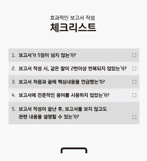 여기서 말하는 글쓰기는 소설가같이 내러티브 한 글쓰기를 말하는 것은 물론 아닙니다. 객관식 OMR카드로 평가받는 우리나라 교육에서 가장 취약한 부분이 글쓰기입니다. 하지만 회사에 들어오면 누구나 보고서의 압박에 자유로울 수 없습니다. 짧고 명료한 단어와 문장으로 효과적인 보고를 하기 위해선 꾸준한 글쓰기 연습이 필요합니다. 아무리 뛰어난 아이디어로 무장한 기획이라 하더라도, 글쓰기 능력이 부족하다면 매력적인 보고서로 이어지긴 어렵습니다. 회사는 말로 일을 하는 곳이 아니라, 서면으로 일을 하는 곳입니다. 따라서 맡은 업무의 성공적 추진을 위해선 글쓰기 능력은 필수적입니다.