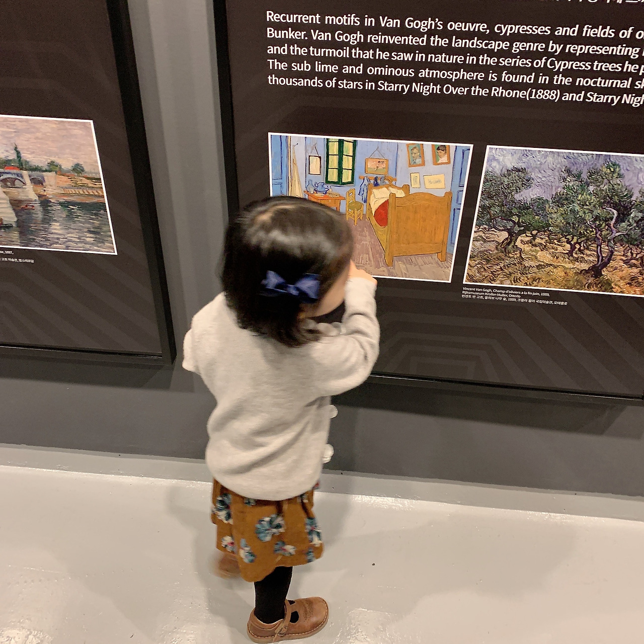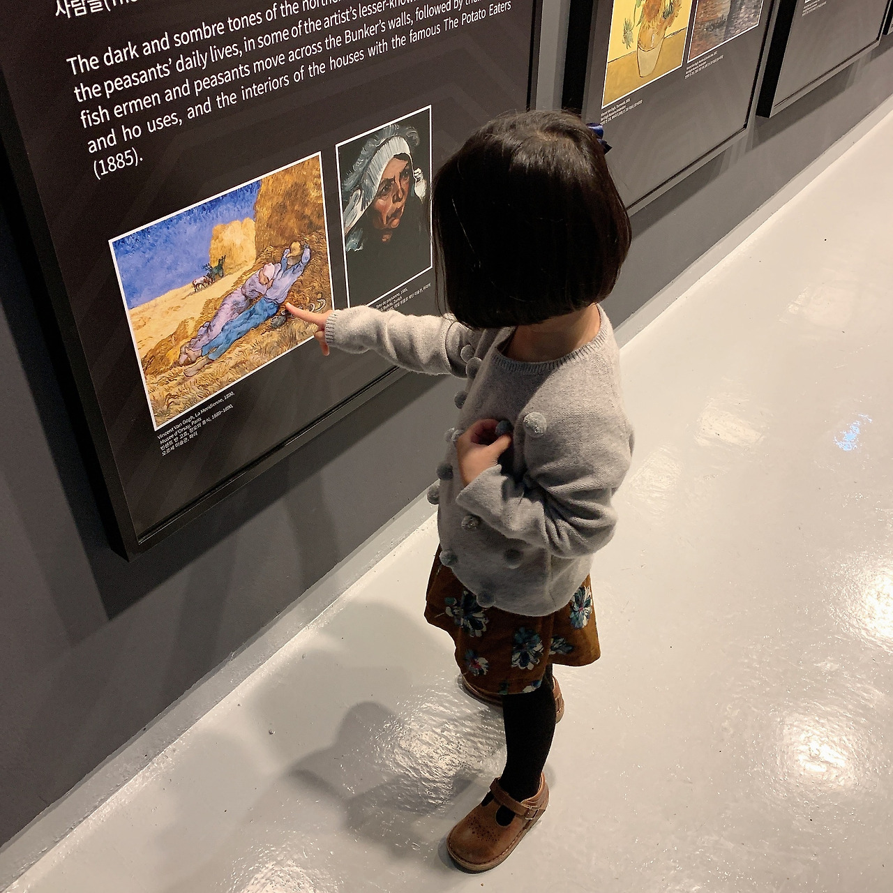 조카는 그림을 좋아한다. 어릴 때부터 미술전을 자주 관람했던 것이 가장 큰 영향을 주었다. 또 반 고흐를 열정적으로 좋아하는 이모 덕분에 반 고흐 전시를 자주 갔던 것도 영향을 주었을 것이다. 나는 조카와 함께 전시를 보는 것을 좋아한다. 내가 좋아하는 것이니 조카도 좋아하길 바라는 마음 때문이다. 미술전이 키즈카페나 놀이동산보다 좋은 영향을 줄 것이라는 언니의 주장과 함께 우리는 수많은 미술전과 전시회를 관람했다. 그 결과 조카는 어린 나이에도 '미술관'이 가장 좋다는 이야기를 자주 하게 되었다.