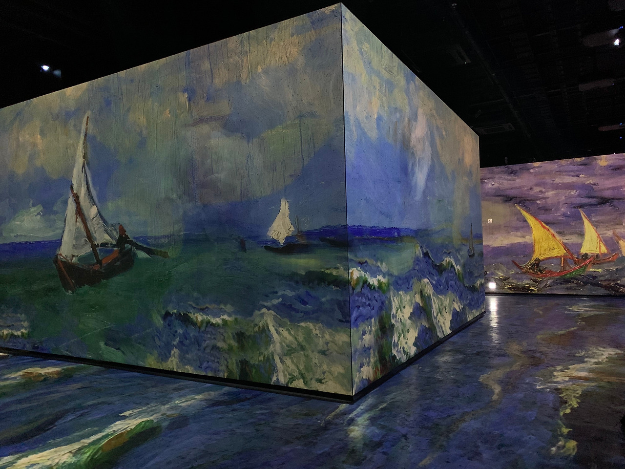 빛의 벙커를 처음 방문했던 것은 2018년 7월이었다. 나에게 이 시기에 이곳에 방문한 것은 큰 의미가 있었다. 2018년 2월 클림트를 만나기 위해 비엔나에 다녀온 후, 아직까지 클림트에 젖어있었기 때문이다. 여행 전 클림트의 그림과 일생을 모두 공부했기 때문에 아직까지 그에 대한 정보도 유효한 시기 었다. 그래서 그런 감각들이 사라지기 전에 이곳에 방문해 보고 싶었고 그 방문의 결과는 꽤 긍정적이었다. 미디어 아트를 좋아하지 않는 나도 눈이 휘둥그레져서 관람할 수 있을 만큼 규모와 퀄리티였다. 아마 첫 전시가 호평이었던 것은 이 장소와 클림트의 그림이 정말 잘 어울렸기 때문일 것이다. 좋은 화질에 거대한 사이즈로 전시된 클림트의 그림은 그 금빛에 감동받기 충분했다. 그리고 그림의 순서나 배치가 적절했고 사운드 또한 감상을 충분히 도왔다. 그렇다면 새로운 반 고흐 전시는 어땠을까?