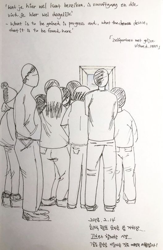 렘브란트의 <유대인 신부>는 고흐가 특히 감명을 받은 작품이다. 오랜 시간 이곳에 서서 그림을 응시하기도 했다고 한다. 그가 서 있었던 그곳에, 지금 내가 있다. 그리고 이 순간, 사진 속 할아버지가 나에게 다가왔다. 렘브란트의 작품 앞에서 한없이 그림을 바라보던 할아버지. 가까이서도 보고, 멀리서도 보고, 이리 보고, 저리 보고, 꼼꼼히 그림을 응시하다 마지막에는 휴대폰과, 태블릿 PC로 사진까지 열심히 담아가던 할아버지. 350년이 지난 지금도 여전히 렘브란트는 많은 사람들에게 영감을 주고 있다. 이 할아버지에게... 그리고 렘브란트가 영감을 주었던 고흐가 지금 나에게 영감을 주고 있는 것처럼. 이 미술관에서 보았던 이 할아버지처럼 늙고 싶어졌다. 나이에 상관없이 예술의 아름다움에 감동받으면서, 그렇게 나이 들고 싶어졌다.