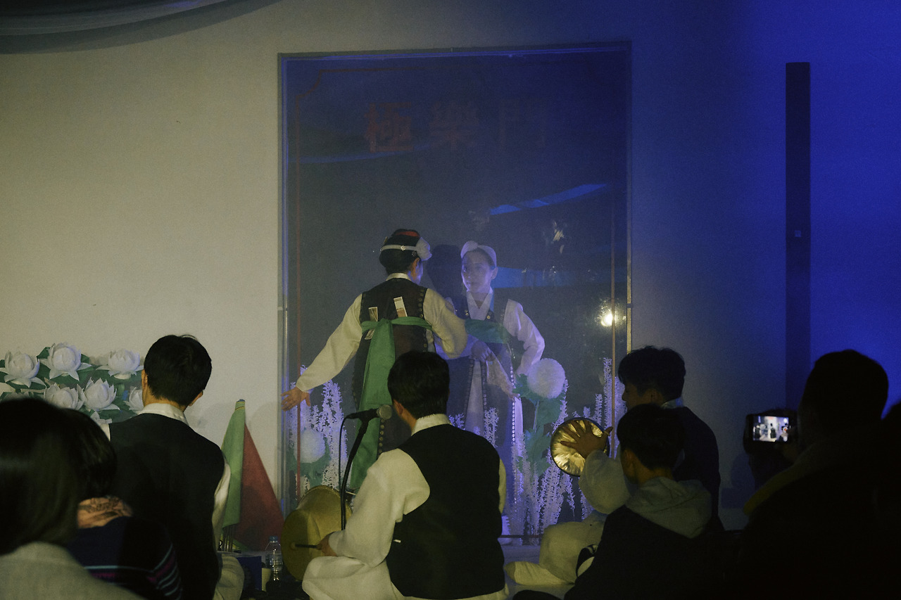 이번 공연에서는 삶과 죽음을 구분하지 않고, 경계 없이 모두를 위로한다. 살아 있는 이들은 죽음을 미리 맞이하고, 굿판에 모인 모두와 복과 공덕을 나누며, 삶과 죽음을 함께 사유한다. 공연은 이렇게 내가 붙들고 있던 실존적 사유, 즉 삶과 죽음의 무의미성과 부딪히면서도 새로운 감각과 느낌을 선사한다.