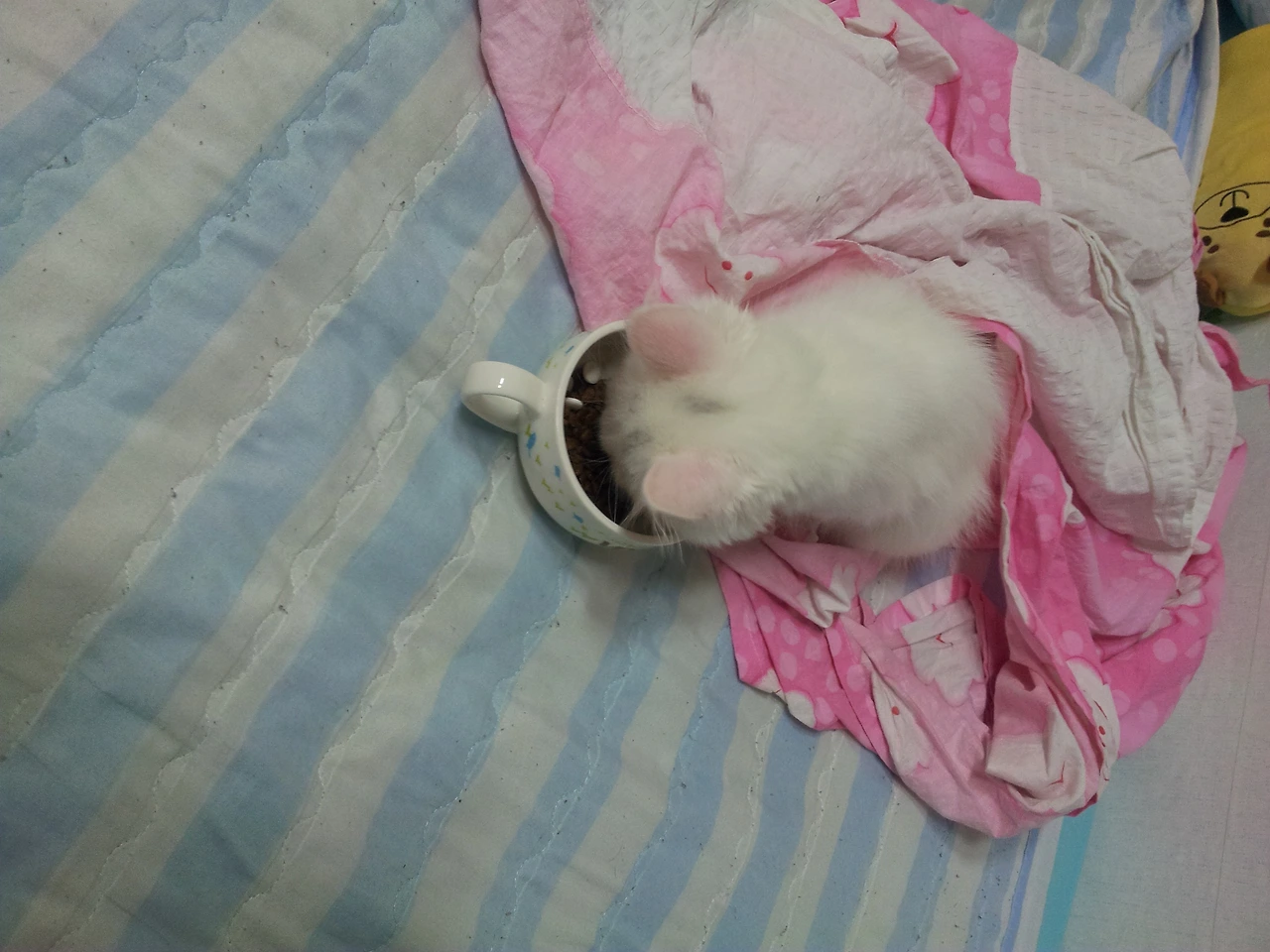 잠들려고 하면 사료 먹기 시작하고,