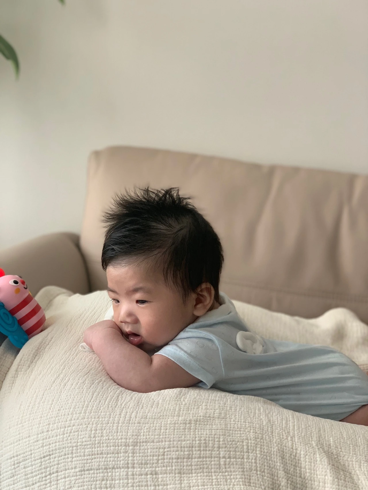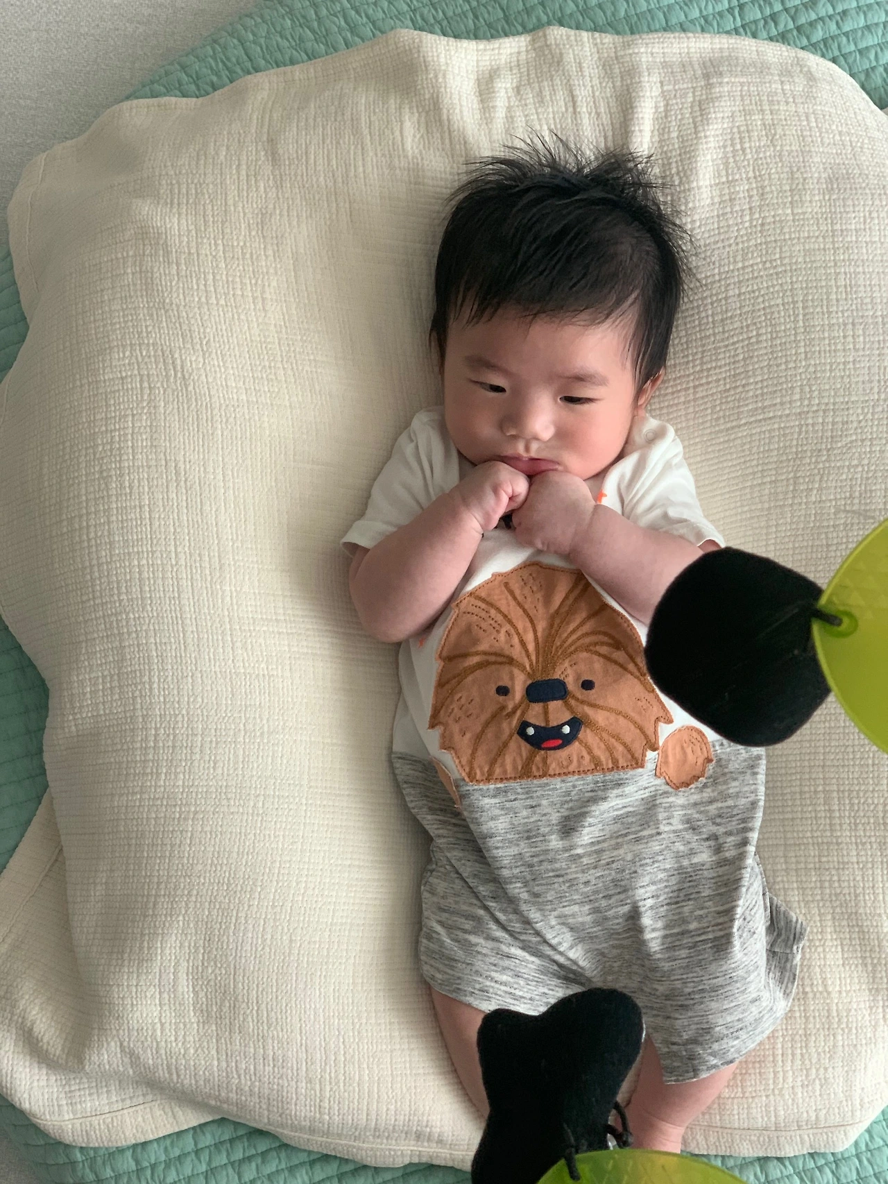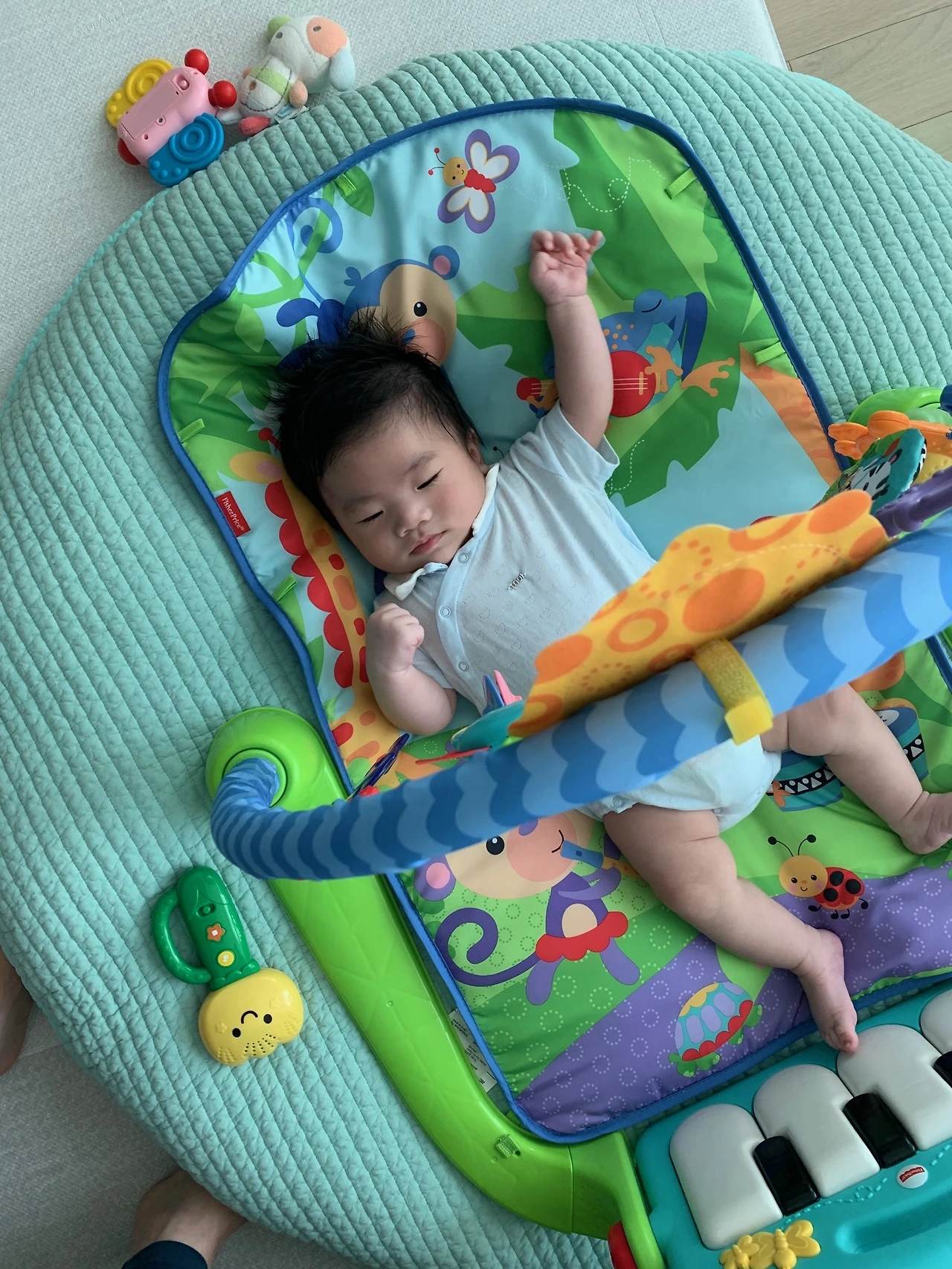 조금씩 놀이의 의미가 생기는 시기인 것 같다. 50일 이후 아기 체육관을 개시해줬는데, 피아노 건반을 신나게 발차기로 두드렸다.