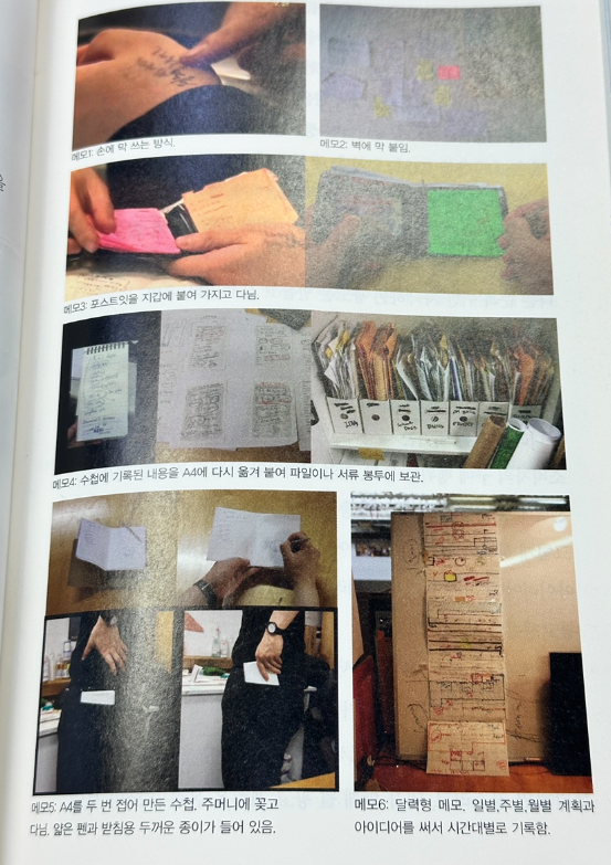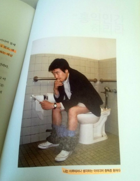 세계적으로 유명한 그는 광고쟁이이자 메모쟁이다. 좋은 광고가 나오기까지 매 순간 아이디어가 떠오르면 메모하고 또 광고로 나오지 못한 많은 아이디어도 모두 기록해 놓는다. 종이, 휴지, 손바닥 어디든 가리지 않는다. 그리고 책상, 벽, 화장실, 지갑 등 눈에 띄는 모든 곳에 메모를 빼곡하게 붙여 놓는다. 화장실에 앉아서까지 메모하는, 다소 민망한 사진이 책에 실린 것만 봐도 그가 얼마나 메모 광인지 알 수 있다.