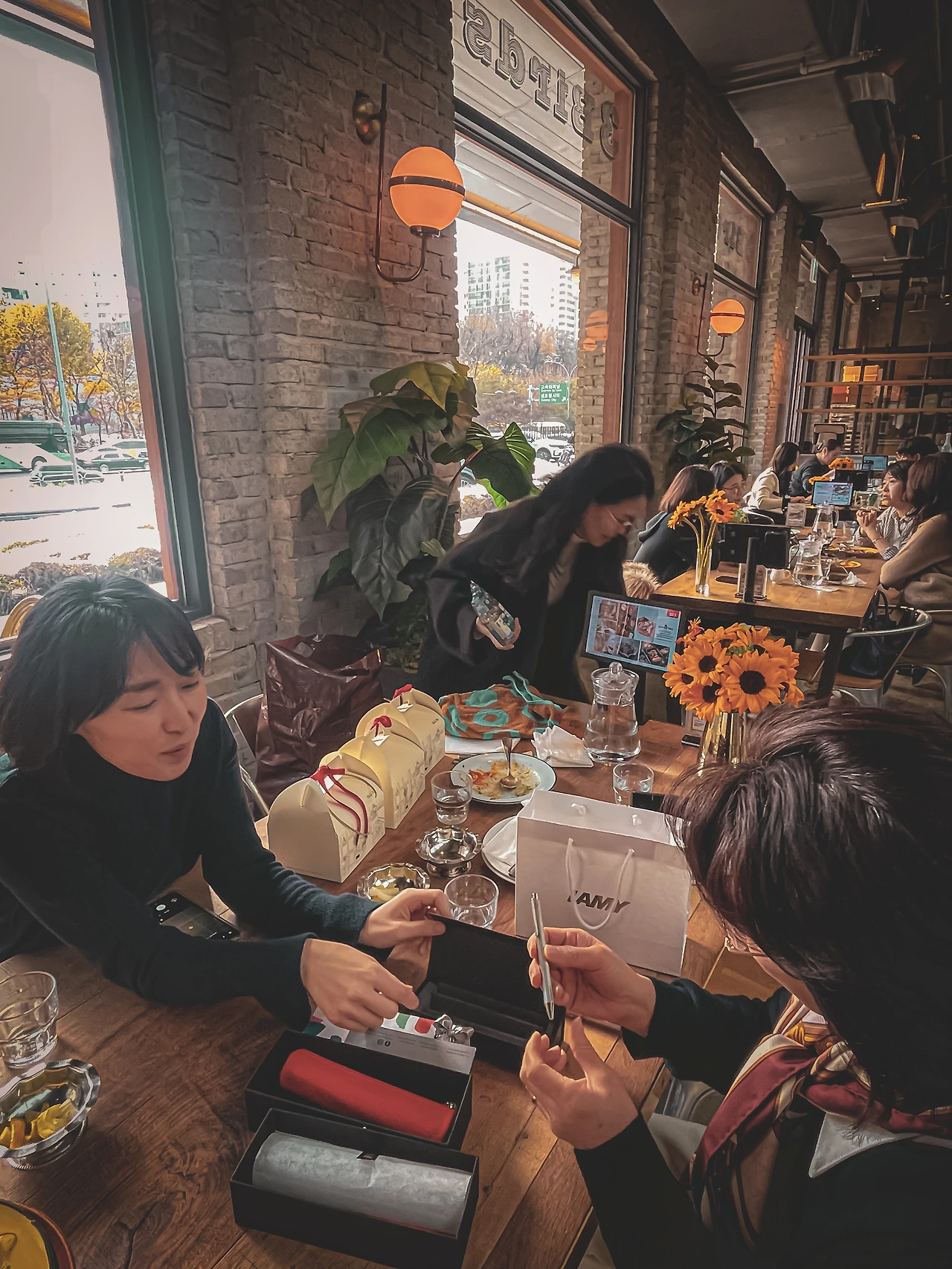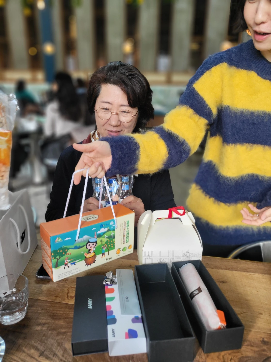 글벗들을 만났다. 온라인 글쓰기 모임이지만 일 년에 한두 번은 만나 이야기를 나눈다. 제주에 계셔서 오프라인 만남이 어려웠던 선생님도 특별히 참석했다. (우리는 서로를 ‘ㅇㅇ선생님’이라고 부른다). 글벗들 나눠주겠다고 캐리어에 담아 온 선물이 한가득이다. 제주 올레 카페에서 비행기 타고 온 스콘까지 있다. 뭐 하나라도 더 챙겨주고 싶은 마음이 넘쳐흘러 손이 모자랄 지경이다.
