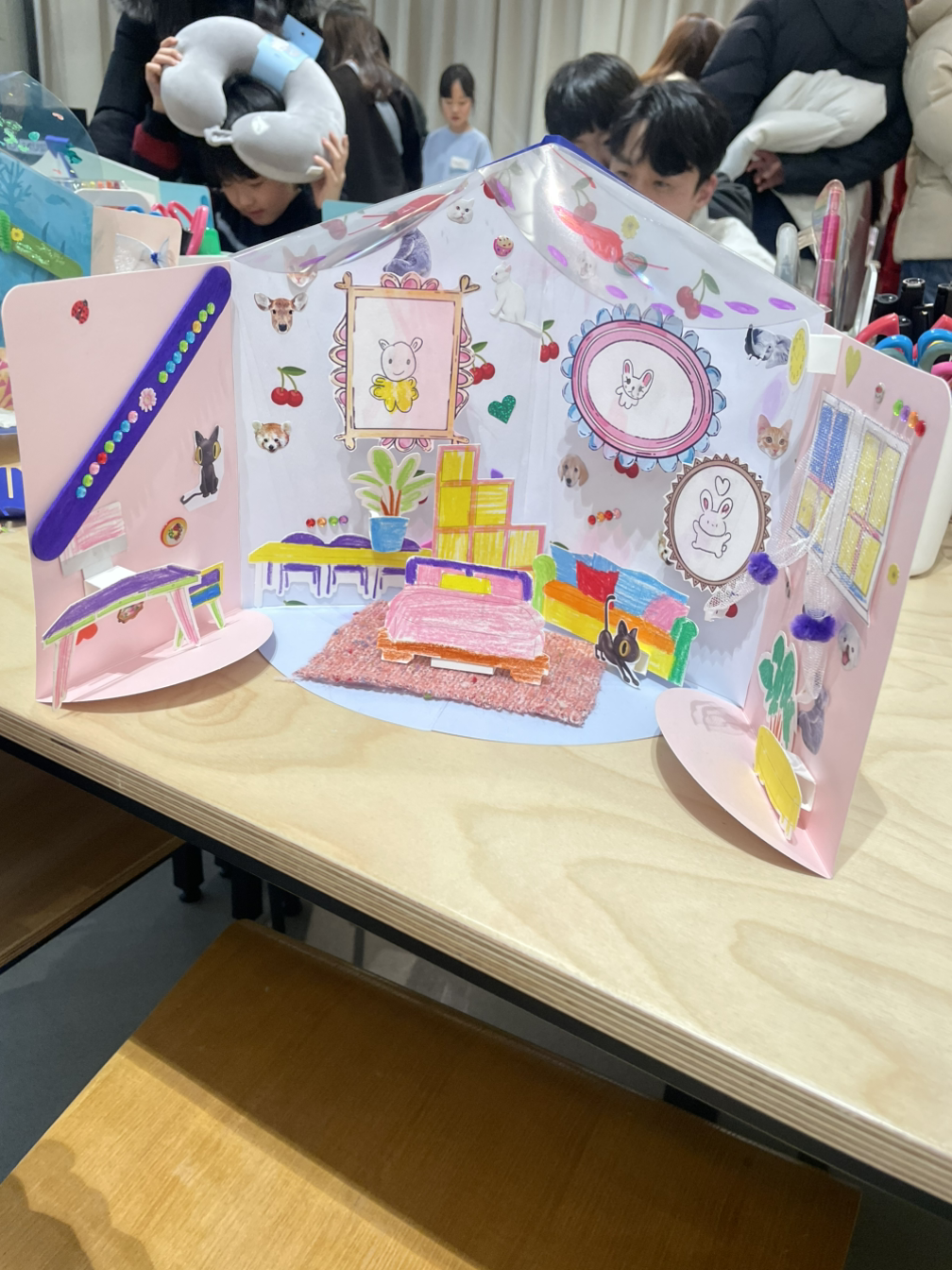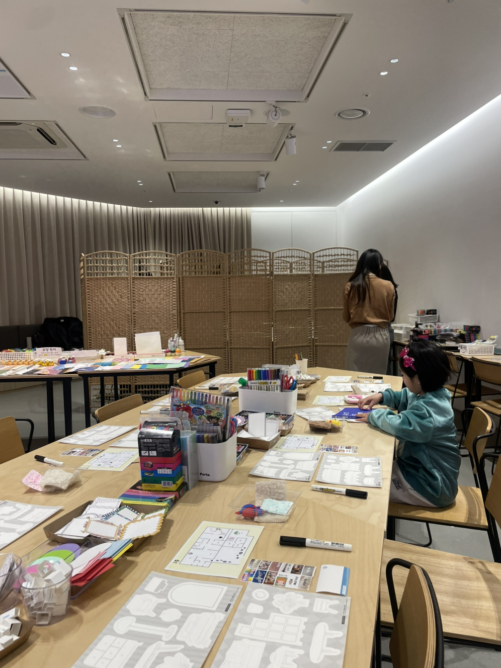 전시를 감상하는 동안 아이는 키즈 프로그램에 참여했다. 아이들도 같은 전시를 간단히 둘러보고 다양한 재료로 자신만의 집을 만드는 시간. 평소 만들기를 좋아하는 딸아이는 1시간이 넘는 시간 동안 온전히 몰입해서 만든 모양새다. 전시에서도 특히 고양이가 가장 기억에 남는다고 했다. 전시가 바뀔 때마다 연계해서 새로운 키즈 프로그램이 기획된다고 하니, 아이와 함께하는 주말을 계획 중인 부모님들께 살며시 권해본다