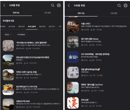 외국어 회화 동호회로 보이는 모임도 있고,