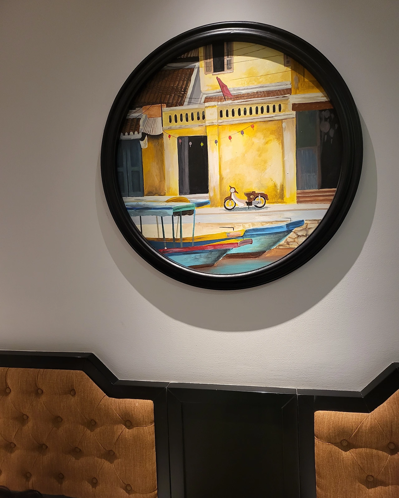 가로등 불빛 아래 가끔 드러나는 이국의 거리를 40분 정도 달려 호텔에 도착했다. 방에 들어서자 예쁜 색감의 열대과일이 대나무 바구니에 담긴 채 우리를 맞았다. 피곤했던 아들과 나는 여행의 감상은 내일로 미루고 일단 잠부터 자기로 했다. 호이안 올드시티의 노란 건물 앞에 작고 흰 오토바이가 그려진 액자를 사이에 두고 우린 각자의 침대로 자석처럼 끌려 들어갔다.