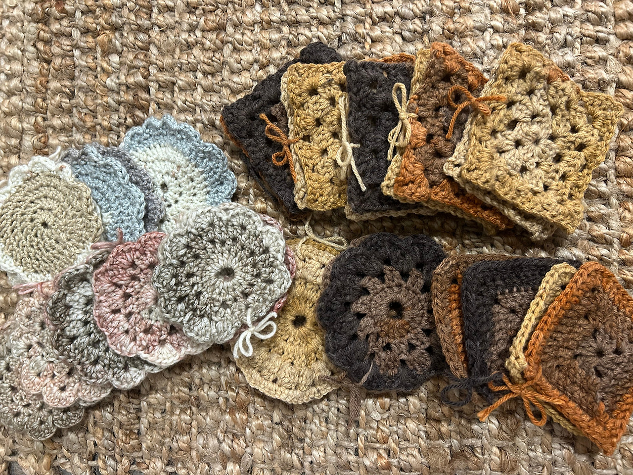 가방이나 옷가지 등, 큰 프로젝트도 뜨개질하기 좋지만, 작게나마 선물하기에도 유용하기에 고민하다 차받침도 여러 개 만들기로 했다. 이번 겨울 한국에 들어갈 예정이라 가족과 가까운 지인들에게 나누어주면 좋을 것 같았다. 무념무상, 영화나 넷플릭스를 보며 꾸준히 만들다 보니 어느덧 40개가량 쌓였다. 두 개씩 묶어서 나눠 드릴 계획이다. 아무래도 뜨개질의 가장 큰 장점은 따듯함 그 자체를 선물할 수 있다는 것, 같다.