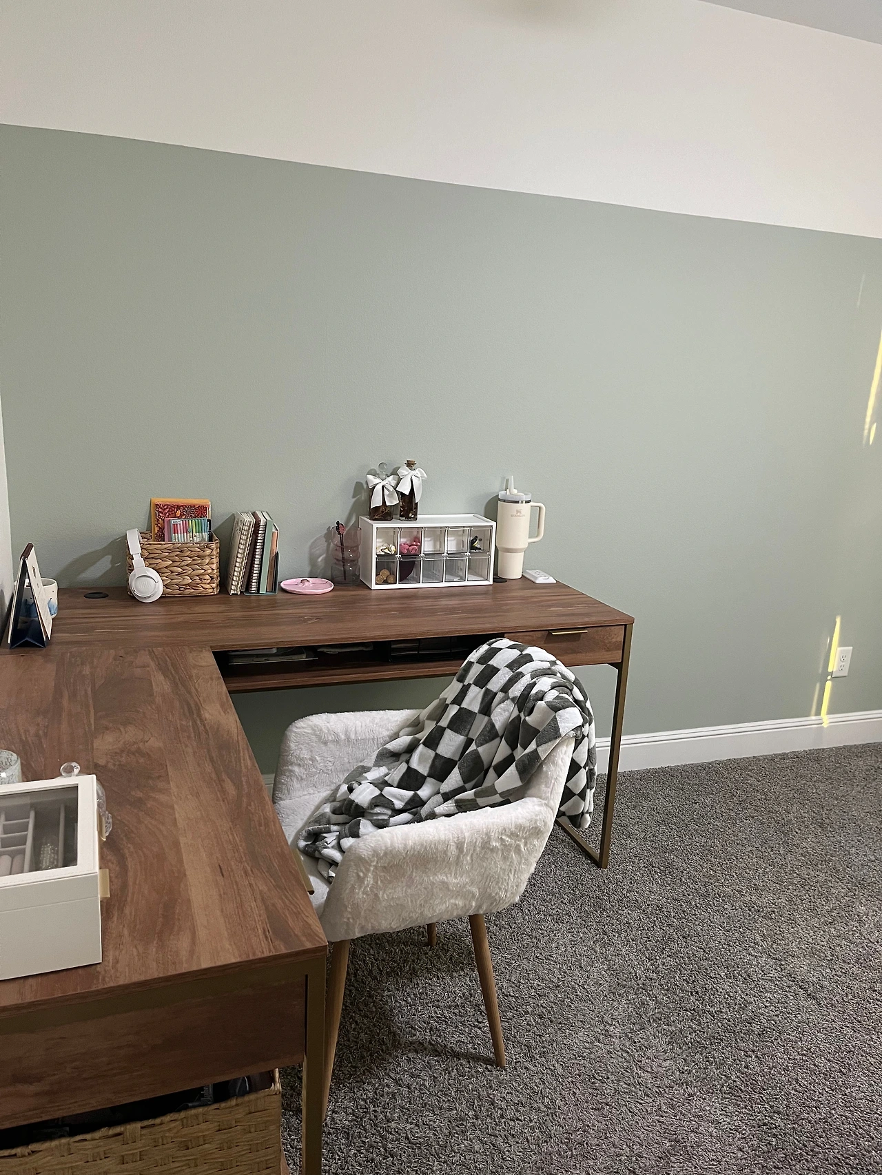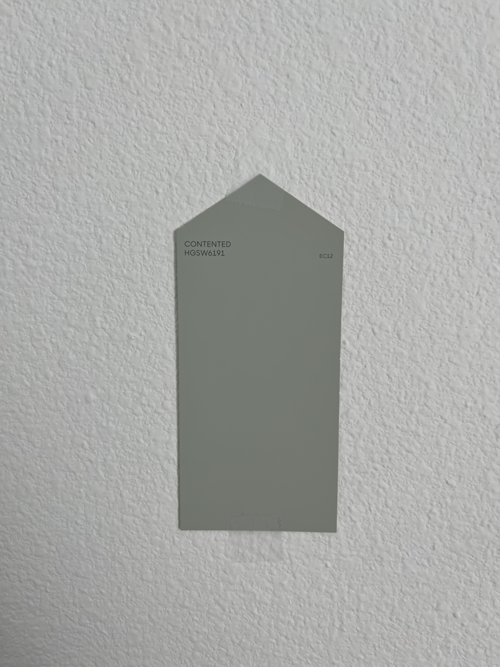 고른 색상의 이름은 “contented“ 로 만족스럽다,라는 뜻이다. 이름 따라간다고, 은은한 초록빛의 페인트 색상이 아주 마음에 들었다. 제일 처음 고른 색은 푸른빛이 도는 회색 빛에 가까웠는데, 잘 바꾸었다고 생각한다. 보다 더 따듯하고 코지한 느낌을 준다.
