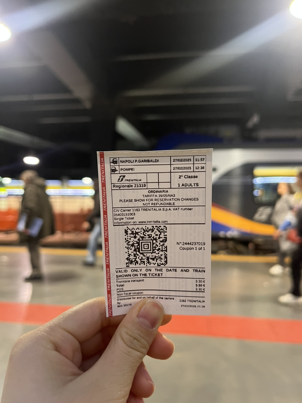 드디어 폼페이로 향하는 기차에 올라탔다. 나폴리에서 한번 갈아탔다. 문제가 있다면 원래 타려던 기차표가 취소되면서 시간이 맞지 않아 표를 변경하게 되었는데, 유적지에서 좀 떨어진 역에서 내리게 된 것이었다. 그 말인즉슨 폼페이역에서 내리고도 한참을 유적지까지 걸어가야 한다는 것이다.