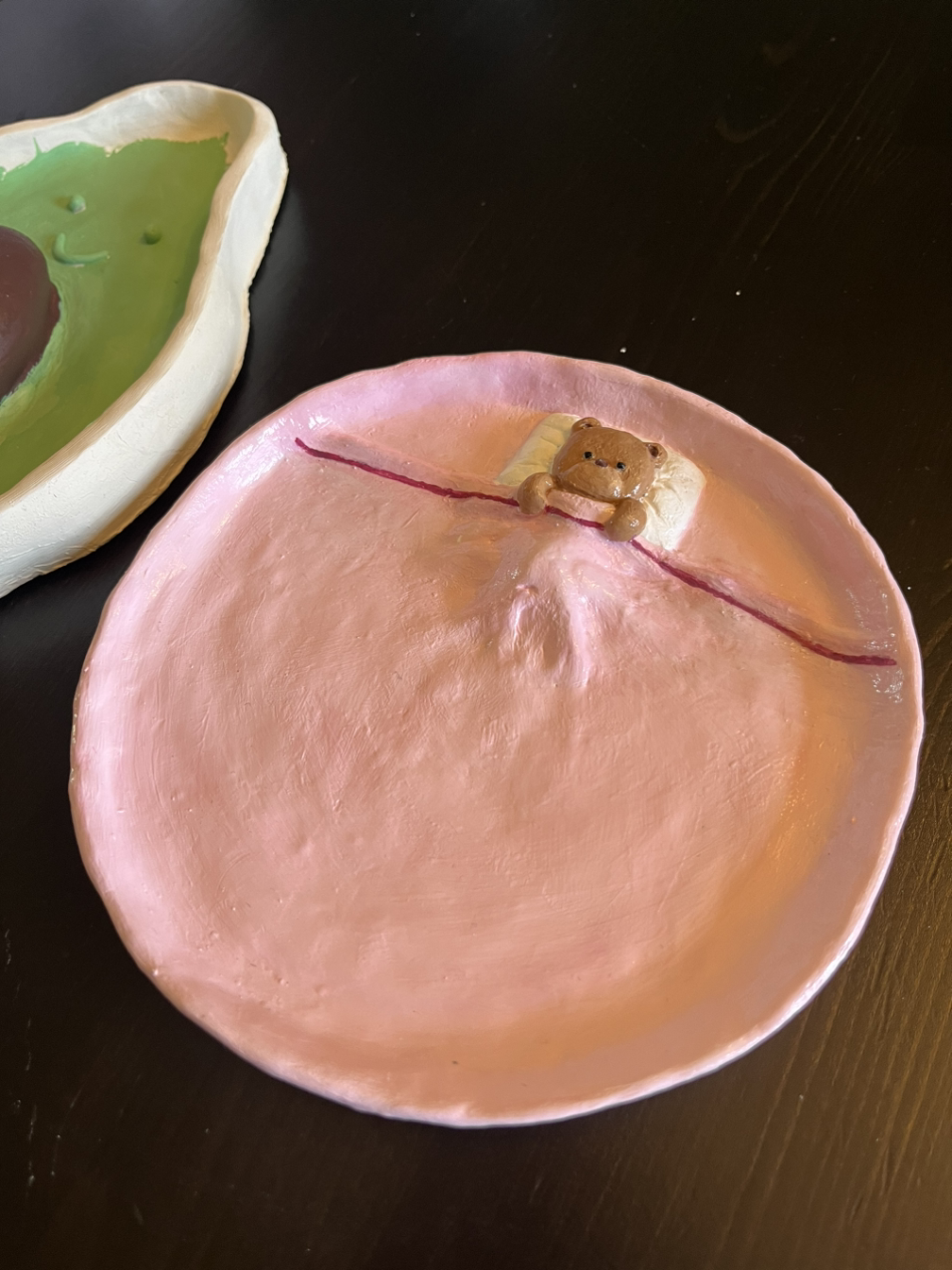 점심을 먹고 준비해 갔던 액세서리 보관용 접시를 만들었다. 유치원생이 된 것 마냥 열심히 찰흙놀이를 했다. 만들고 굳히고, 채색하고 말리고, 바니쉬까지 바르느라 며칠 걸렸지만 나름 뿌듯한 결과물이 나왔다.