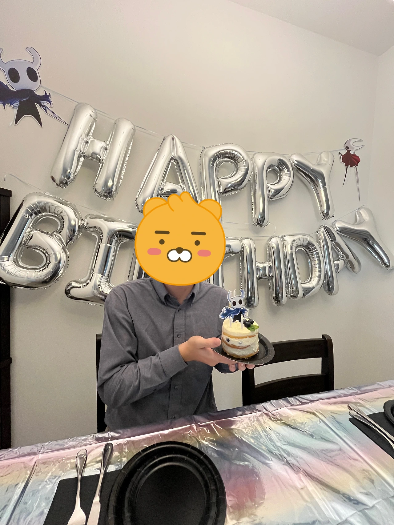 생일을 크게 챙기지는 않지만 즐거운 생일을 보내기 위해 생일파티 주제를 남편이 좋아하는 게임 캐릭터로 정했다. 한 다섯 살 난 어린아이의 생일 파티 분위기를 내고 싶어 피자도 시키고, 친구들도 부르고 여기저기 게임 캐릭터 사진을 붙여놓았다. 심지어 케이크에도 게임 캐릭터를 꽂았다. 웃겼다. 케이크는 망했지만, 그래도 느낌 아니까~ 남편은 그 와중에 내가 안쓰러웠는지 조금 뻑뻑하지만 맛있다며 다 먹었다. 미안, 다음번에는 제대로 해볼게!