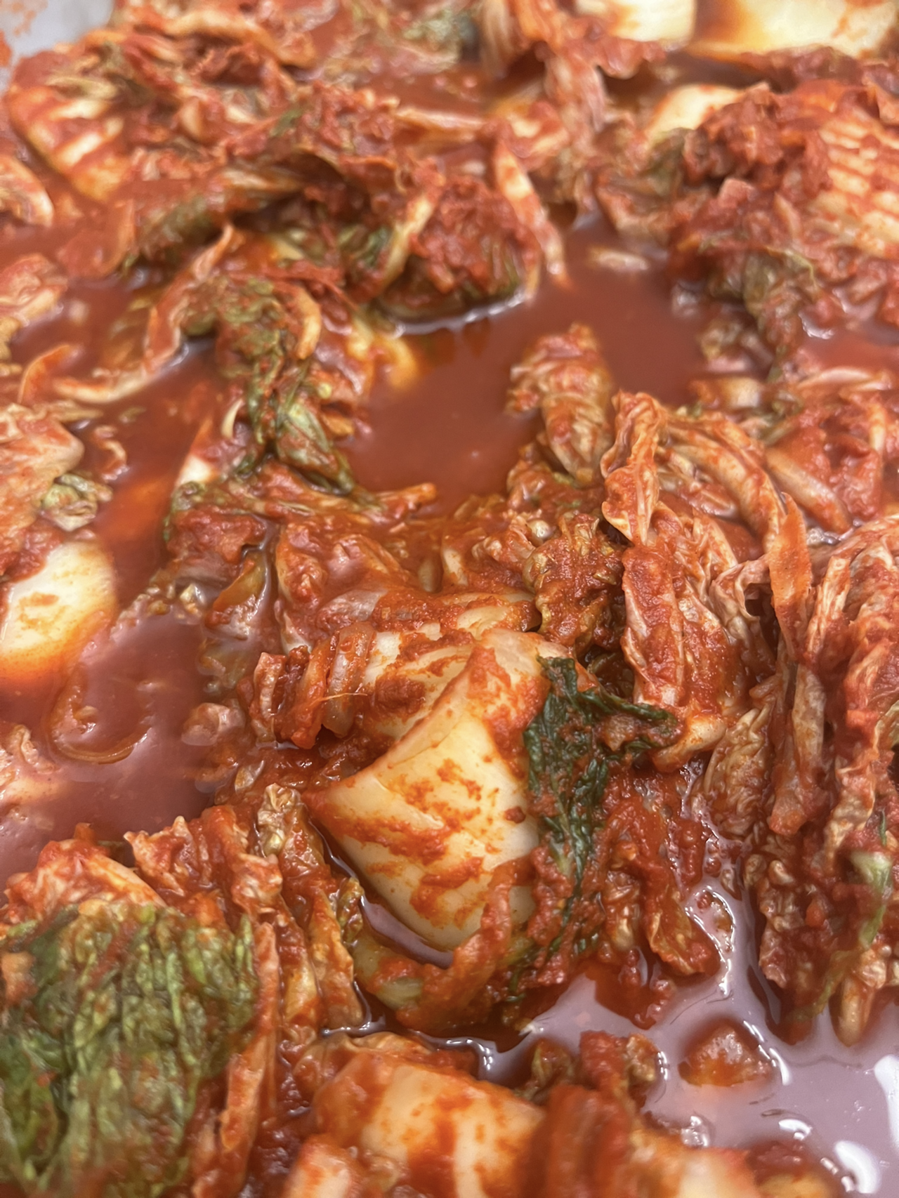 먼저 배추를 깨끗이 씻어 썰고 일반 소금에 한두 시간가량 절였다. 그 후에 채 썬 양파를 넣고 고춧가루, 설탕, 다진 마늘, 매실청, 그리고 조금 남은 액젓을 싹 싹 긁어모아 넣었다. 잘 버무리고 하루 이상 냉장 보관을 하였다.