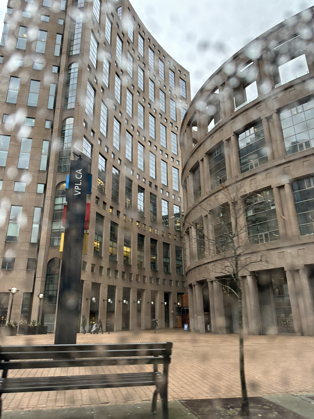 다운타운에서 약속+빅토리아로 도넛 배달을 해야 해서 도넛 가게도 들러야 하는 관계로 친구 부부가 또 차를 태워다 줬다. 가는 길 나의 밴쿠버 최애 건물 2위로 내려간 공립도서관(1위는 Vancouver House)! 비 맞은 창밖으로 보이는 모습도 멋있다!