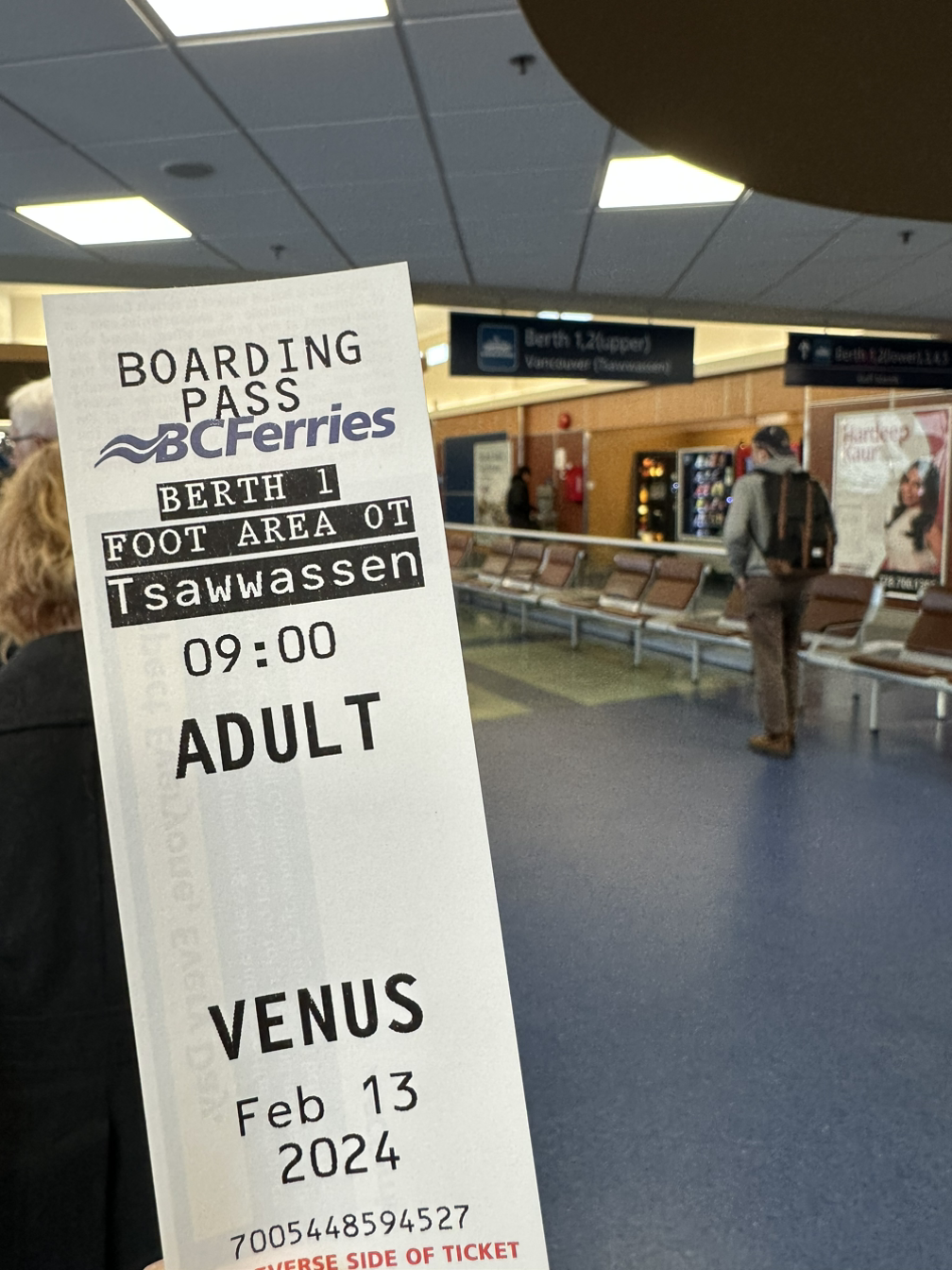 페리 편도 (Swartz to Tsawwassen): CAD $19.20