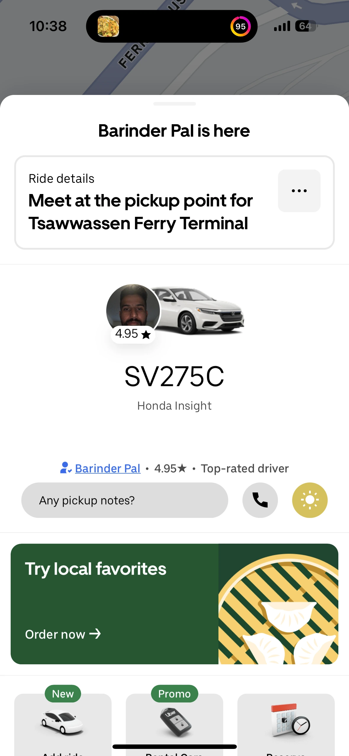 아침 먹고, 페리에 앉아 우버 예약하며 조금 여유를 누리니, 도착!