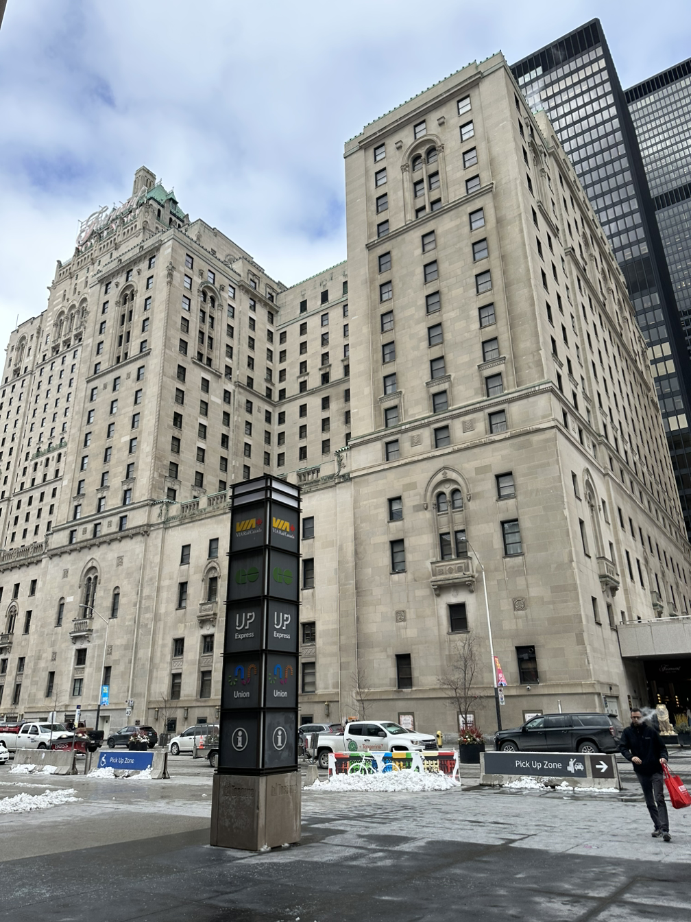 약 20분 정도 Front Street을 따라 걸으면 The Well에 도착한다. 밖으로 나오니 바로 건너편 보이는 건물 Fairmont Royal York 호텔! 이쯤 되니 왜 캐나다 대형 유명 호텔은 모두 Fairmont 인지 궁금하다. 아마도 체인이라 그렇겠지만… GPT에게 물어봐야겠다.