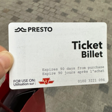 아직도 종이 티켓을 사용하는 토론토! 이런 면에선 플라스틱 Compass를 사용하는 밴쿠버가 더 맘에 든다. 충전도 편하고, 소지도 편하고, 분실의 위험도 없으니 말이다.