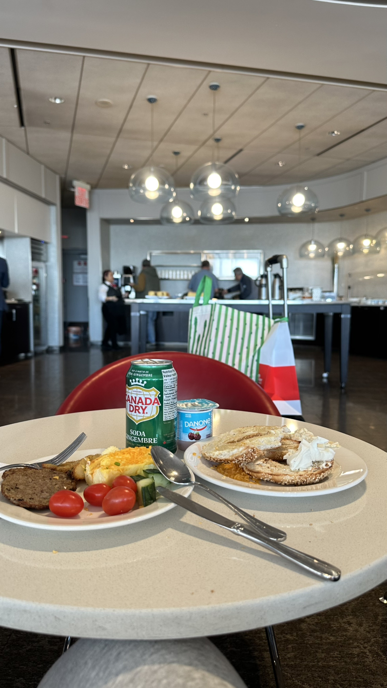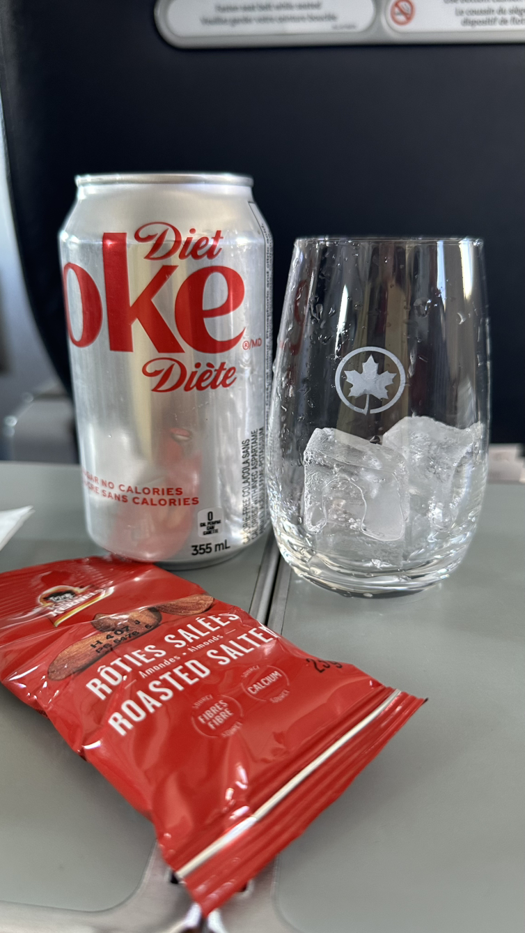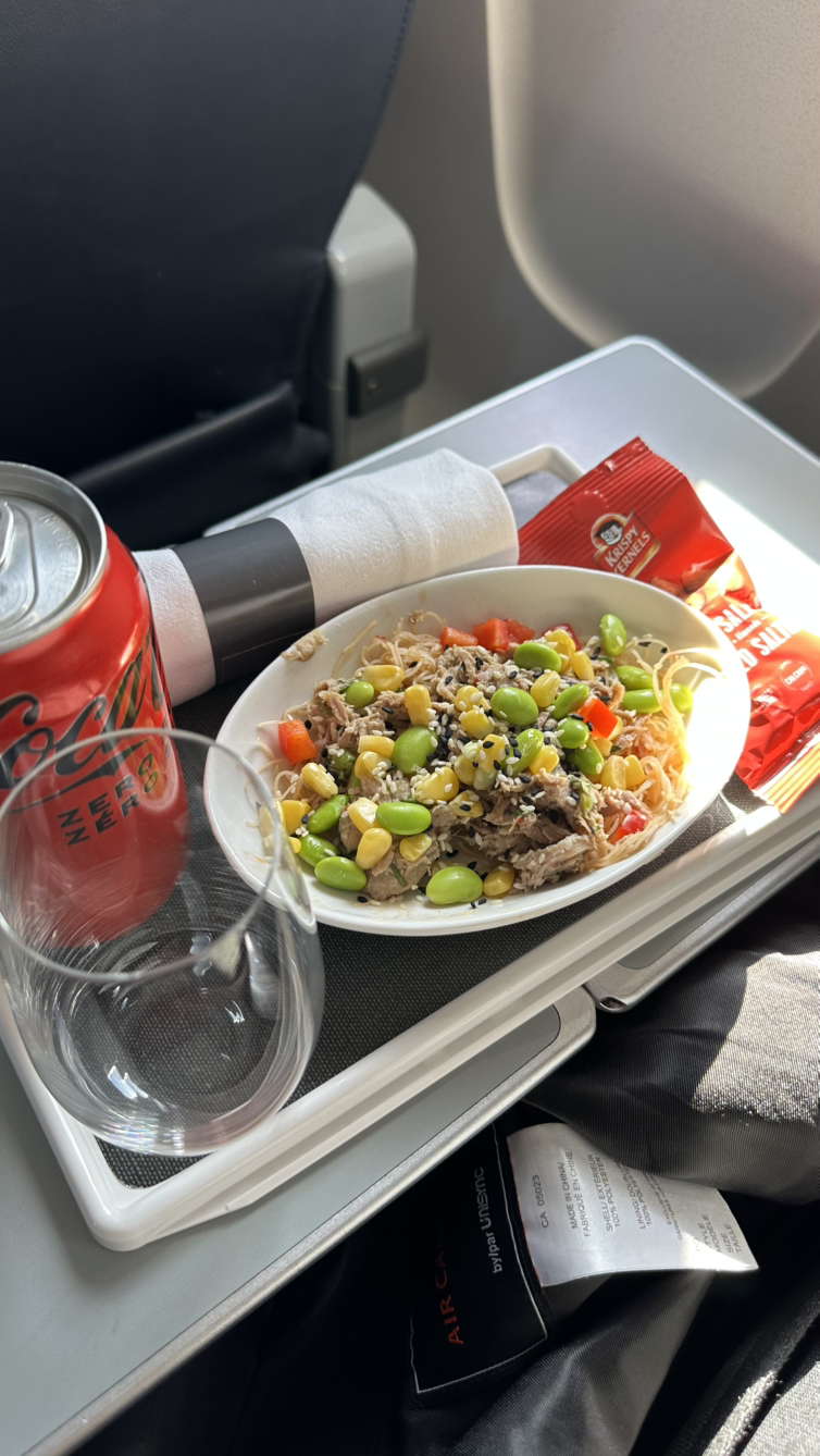 드디어 탑승! 이번 여행은 백 프로 마일리지 티켓으로 구매를 했다. 마지막에 귀국 편을 좀 수정하는 바람에 일정 잡기가 좀 어려웠는데, 그렇다 보니 귀국 편은 토론토-워싱턴 D.C.-샌프란시스코-인천 이렇게 두 번 경유를 하고 간다. 국내선들은 비행기가 작다! 그리고, 국내선이나 미주노선은 음료만 줄 뿐, 밥을 안 준다! 라운지 파워 다시 한번 감사! 옆자리에 에어캐나다 승무원 언니가 탔는데, 식사를 주문해 먹길래, 주책맞게 사진 좀 찍는다 허락하고 찍었다. 돈 내면 밥 준다!
