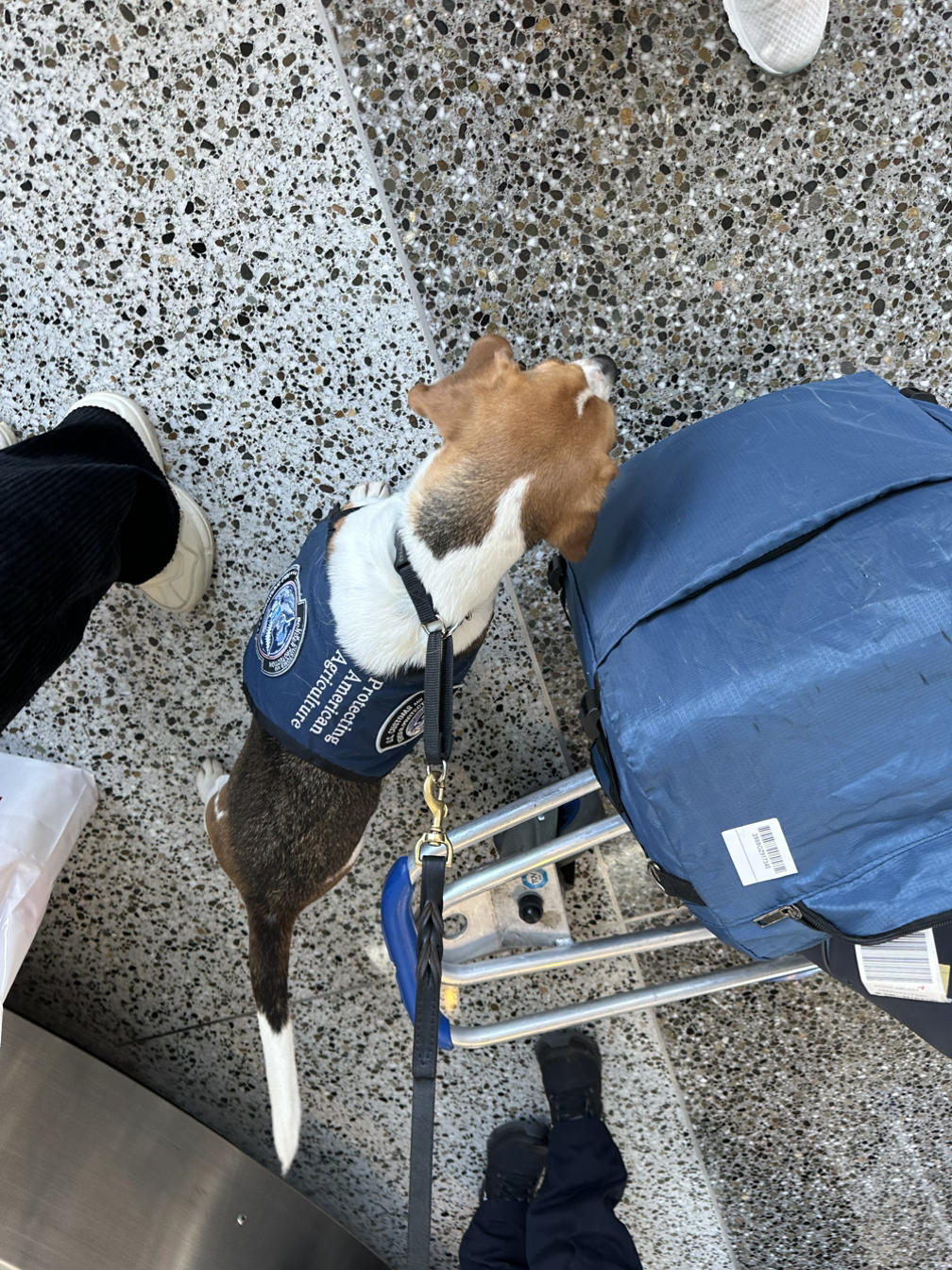 여기서 잠깐! 헷갈린다. 입국 심사하고 짐 찾는 게 아니고, 짐을 찾고 입국심사를 하네. 뭔가 이상하지만, 하라는 대로 해야 미국 입국은 문제가 없으니 흐르는 대로 짐 벨트에 서서 대기! 귀여운 비글이 불법 농산물 가져온 게 없는지 열심히 검사한다.