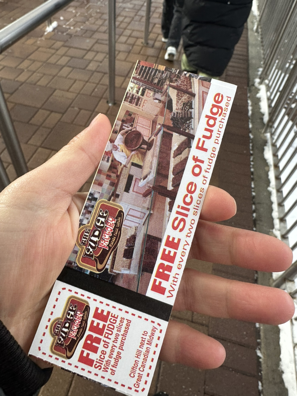 티켓 뒤를 보니 퍼지 두 조갈 먹음 하나 무료로 준단다. 음식을 공유하지 않는 이들이기에 그럼 저 쿠폰 들고 가 혼자 세 조각 먹으란 말인가? 아님 둘이 가서 세 조각을 시켜도 되는 건가 궁금해지기 시작! 나중에 GPT에게 물어봐야겠다.
