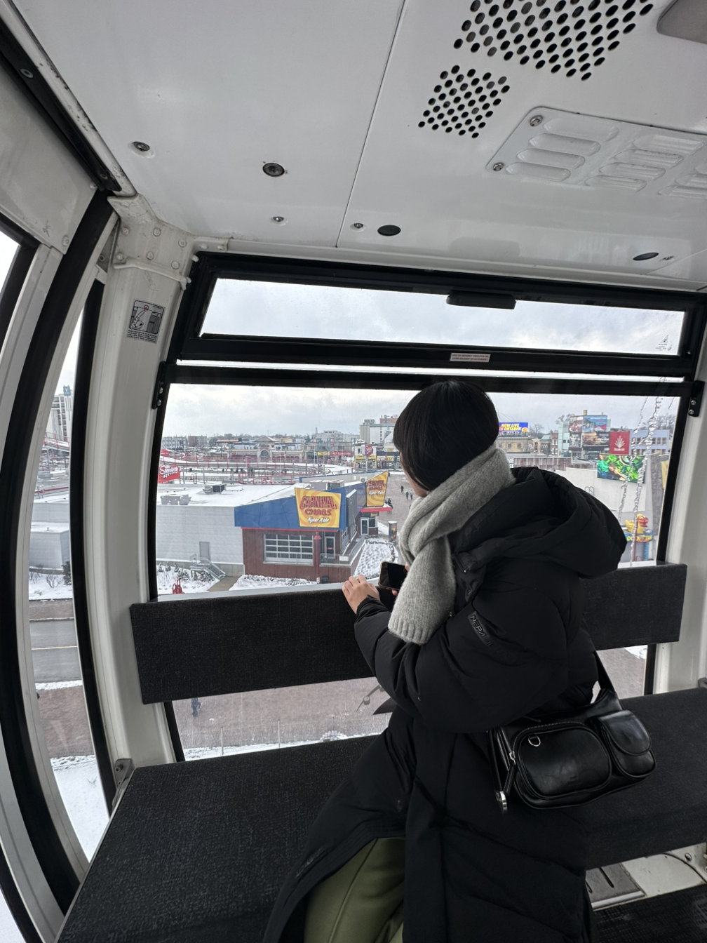 드디어 탑승!! 출발은 언제나 괜찮다. 역시나 풍경을 즐길 만큼 올라가니 흔들리기 시작! 나만의 절대 룰!!! 땅을 보지 말고 공중을 봐라!!! 난 왜 이리 이런 걸 못 타는지… 그래도 오늘은 눈은 많이 안 감았으니 그것만으로도 성공!!!