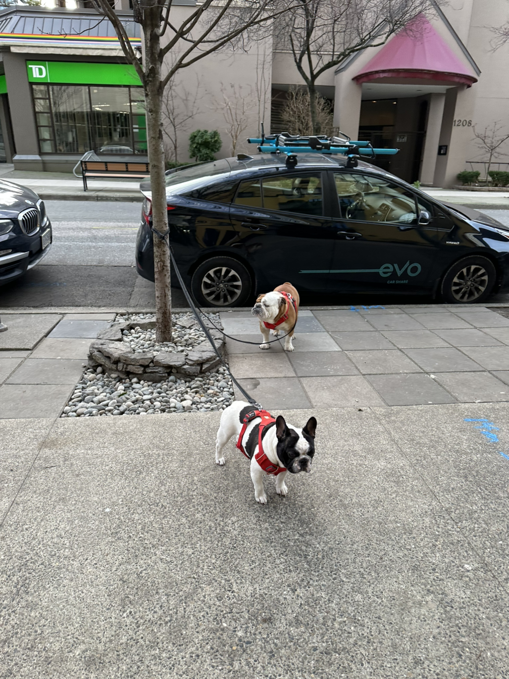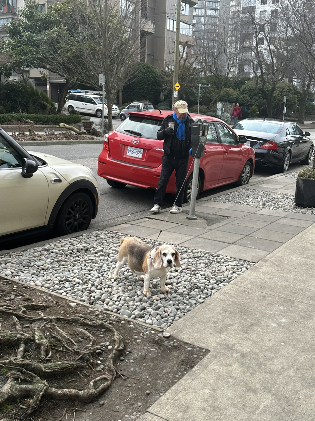 다운타운 잉글리시베이 쪽 커피숍에서 제자 J가 일을 한다. 캐나다의 커피숍은 의외로 애견 실내동반이 모두 가능하진 않다. 그래서인지 이렇게 개들만 밖에 묶여 있는 것을 종종 목격한다. 주인을 찾는 듯 하지만, 얌전히 있는 모습은 이미 이런 걸 여러 번 해본 경험치!
