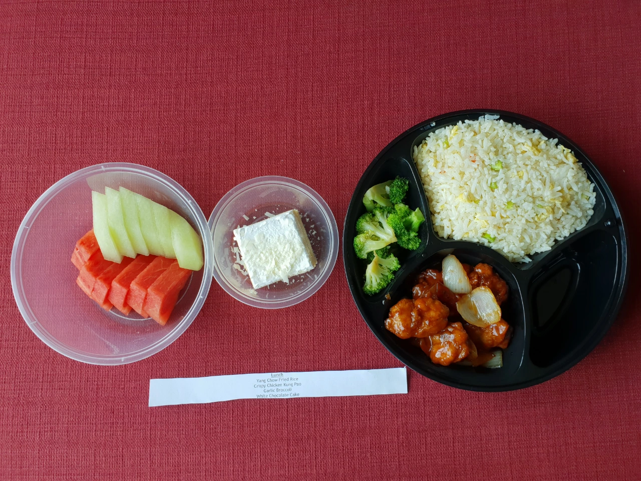 Yang Chow Fried Rice Crispy Chicken Kung Pao Garlic Broccoli White Chocolate Cake