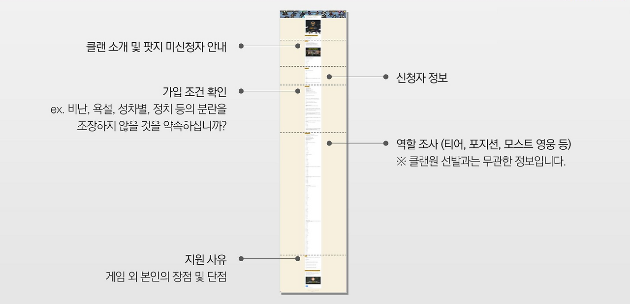 가입신청서가 길수록 귀찮아지니 후반부 지원 사유에서 정성을 보이는 사람은 정말 예의 바른 사람일 것이다 가정했고, 아쉬워도 좋은 클랜원을 만나기 위해서 가입신청서 양식을 유지했다.