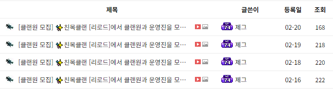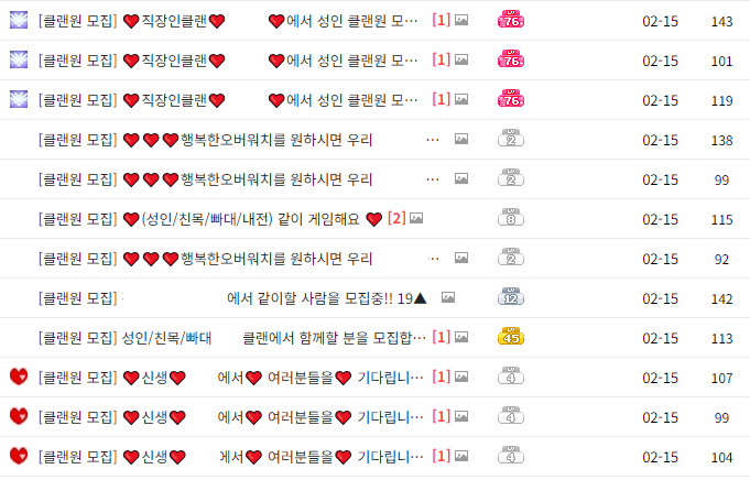 에이 이런 거 정식으로 홍보할 곳이 얼마나 있겠어 싶지만 인터넷 세상엔 생각보다 많은 커뮤니티가, 그리고 많은 곳에 따로 게시판을 통해 홍보할 수 있게 돼있다. 진짜 찾아보고 놀랬다. 아니 다들 나 빼고 클랜 만들고 놀고 있던 건가?