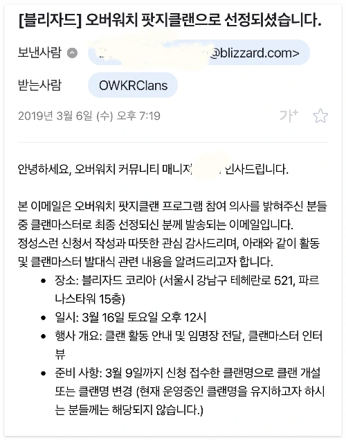 링크 : 블리자드 연말파티에 초청받은 오버워치 클랜 운영기 #1