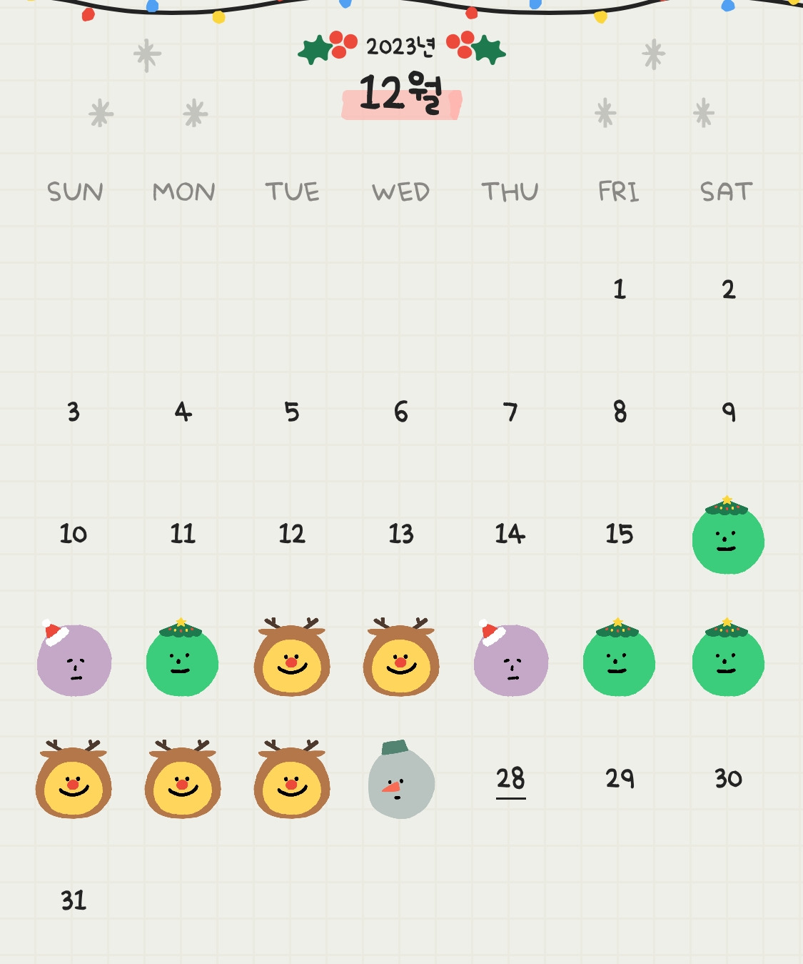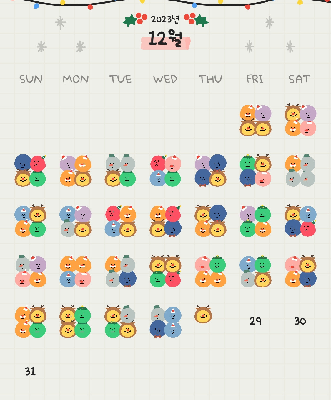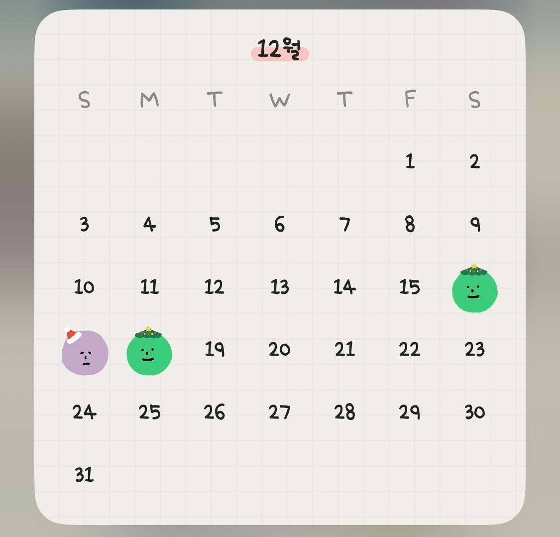 일기 화면 꾸미기는 물론이고, 한 달의 MOOD를 귀여운 그림으로 확인할 수 있는 위젯도 제공하는데, 너무 귀여워서 위젯 탭에 띄워 놓고 가끔씩 들여다보고 있다.