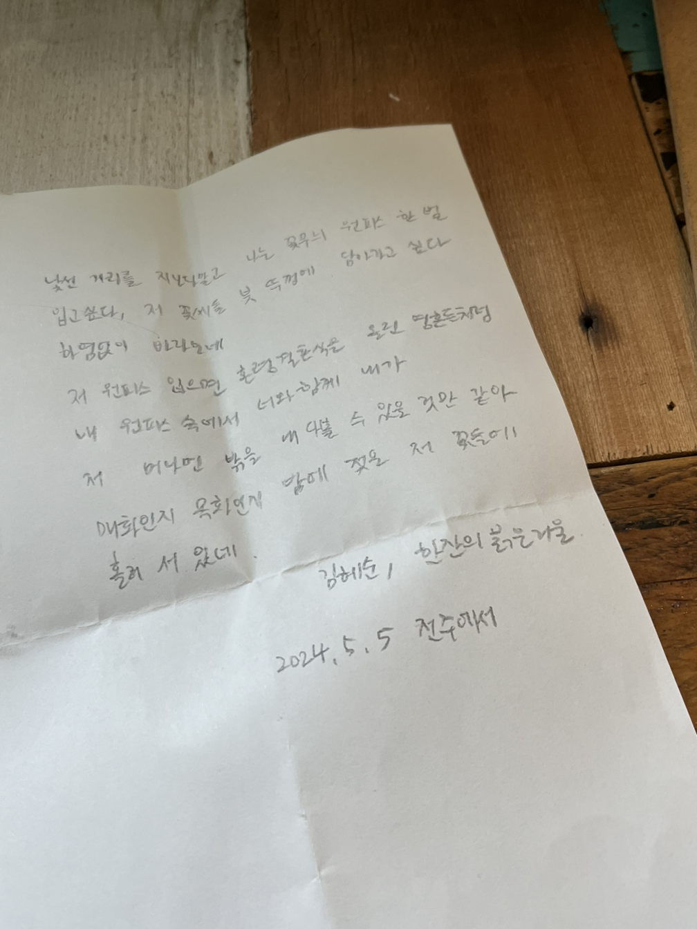 수첩 사이에 잘 넣고 왔다