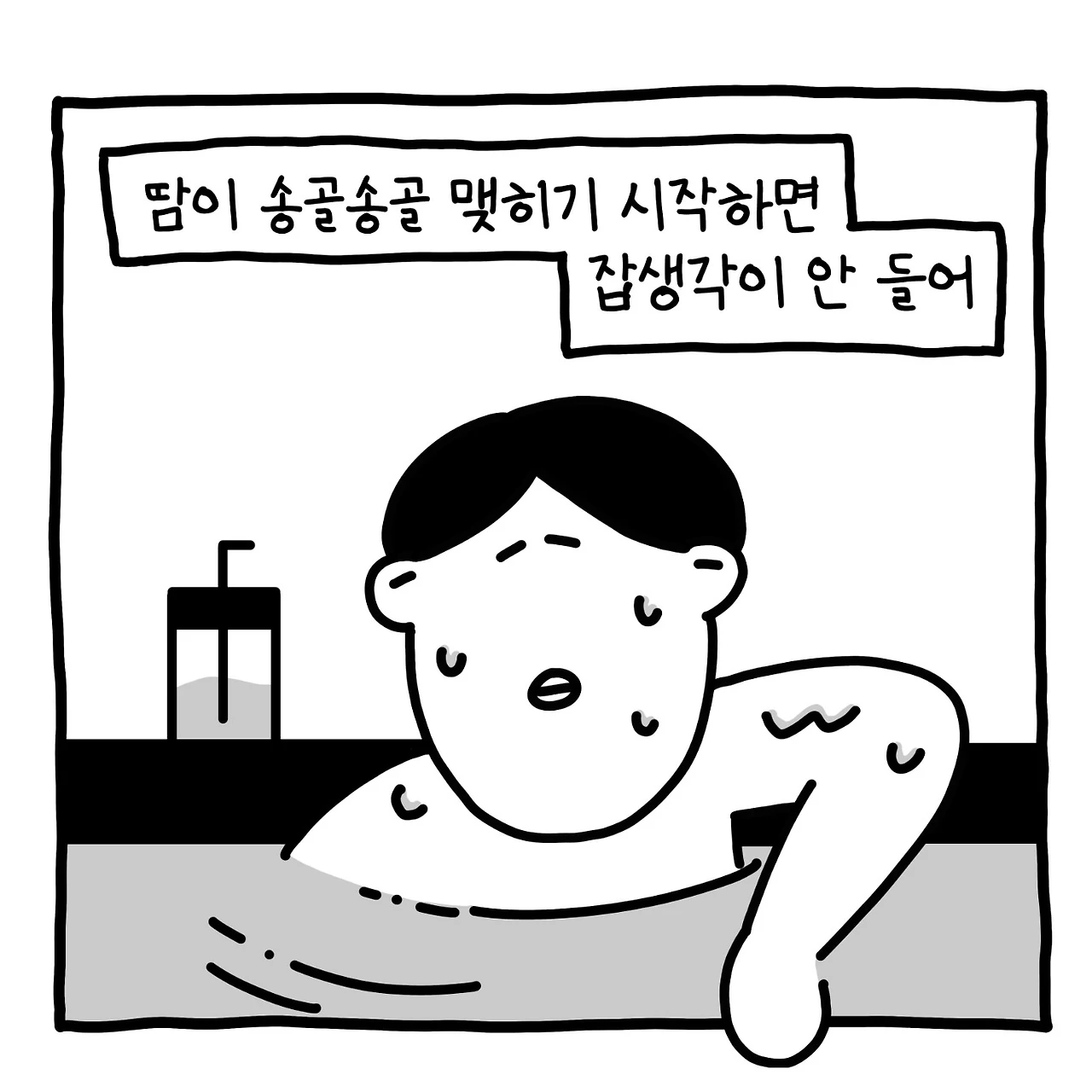 이마엔 땀이 맺히고, 굳어 있던 어깨가 스르르 풀린다.