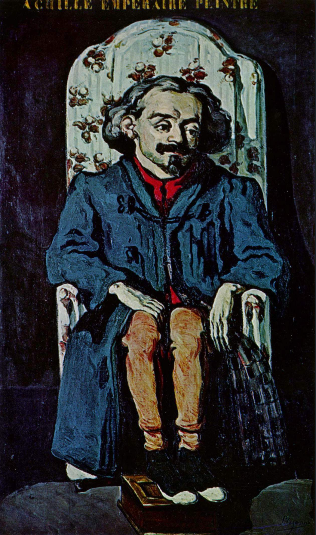 “자네는 내 청춘의 모든 것!”이라는 졸라의 현란한 글에 세잔이 감동했다. 그 화답으로 아버지로 하여금 바로 자신의 정물화 아래에서 자세를 취하도록 부탁했다. 공화파의 ‘르 시에클’을 읽던 아버지가 어색한 듯 ‘레베느망’ 제호를 보여준다. 세잔은 팔레트 나이프로 물감을 찍어 발라 대형 초상화(200x120cm)를 완성했다. 쿠르베의 마티에르(matiere) 기법이다. 아카데미 쉬스 출신 미술가들 모두 쿠르베의 사실주의를 지지하고, 마네의 그림에 대해 열렬히 토론할 때였다. 몇 년 후 같은 의자에 앉은 <아시유 앙페레르의 초상>과 비교하면, 짧은 시기에 화풍에서 확연한 차이가 발견된다. 쉬스에서 함께 수학했고, 매우 존경했던 인물을 표현하면서 피사로에게 배운 작풍을 사용했기 때문이다. 따라서 워싱턴 D.C. 내셔널 갤러리에서는 이 초상화 <신문을 읽고 있는 화가의 아버지>를 기준으로 근대 회화의 전과 후를 구분한다.