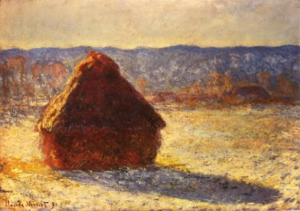 “나는 오직 러시아 사실주의 미술만을 알고 있었다. (···) 갑자기 처음으로 나는 어떤 ‘그림’을 보았다. 도록은 그 작품이 <건초더미>라고 알려주었다. 나는 그것을 알아보기 힘들어 스트레스를 받았다. 나는 또 화가가 그렇게 불분명하게 그릴 권리가 없었다고 느꼈다. 그러나 그것은 기억에 지울 수 없이 새겨졌고, 가장 작은 세부들까지 눈앞에 어른거리는 것을 느낄 수 있었다. 분명한 것은 이전에 몰랐던 나의 예상외의 힘이 팔레트에 있었다는 사실이다. 그리고 그 힘은 나의 모든 꿈을 능가했다.” (칸딘스키, <예술에 있어서 정신적인 것에 대하여>)