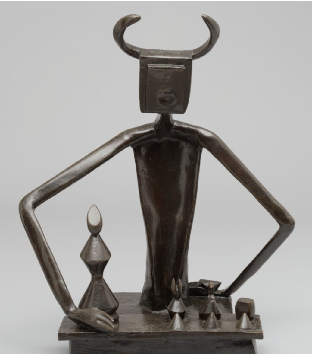 1944년 여름, 에른스트는 미모의 연인 도로시아 태닝과 함께 갤러리 주인 줄리언 레비가 있는 롱아일랜드에서 지낼 때 체스의 세계에 몰입했다. <왕비와 놀고 있는 왕>이 이때의 작품이다. 체스는 마르셀 뒤샹이 프로 수준이다. 그러나 에른스트는 게임의 미술적·문학적 특성에 관심을 기울였다. 가장 좋아하는 루이스 캐럴의 <겨울 나라의 앨리스>에서 주인공을 이끈 세계와 체스 말들이 사는 세계를 연결했다고 전한다. 하지만 내용은 동화처럼 순수하지 않다. 성적인 의미가 내포되었다. 머리에 왕관 대신 뿔을 달고 있는 체스 말에게서 관능적이면서 폭력적인 미노타우로스를 연상할 수 있다. 왕의 벌린 팔에서 권위적인 태도가 엿보이며, 여왕을 감싸 강렬한 소유욕과 동시에 보호 본능을 나타낸다. 잘 생기고 사랑과 예술을 위해 거칠 것이 없었던 에른스트의 자화상이다.