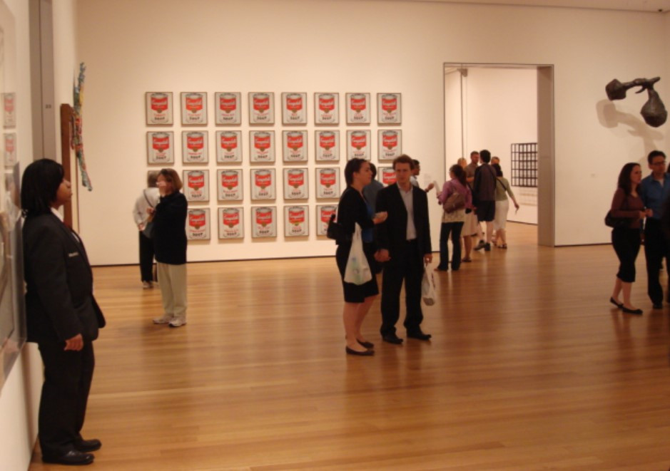 아서 단토가 꼽은 또 한 명의 현대 미술의 개척자가 앤디 워홀(Andy Warhol, 1928~1987)이다. 그러나 워홀은 라우센버그와 그의 친구 제스퍼 존스의 작품 앞에 서기만 하면 한없이 작아졌다. 뒤샹의 그림을 흉내 냈지만, 광고업계에 종사하는 한낱 상업 미술가였을 뿐이었다. 다행히 그는 주변의 조언을 적극적으로 받아들이는 성격이었다. 드디어 <캠벨 수프 깡통(1962)> 37점을 전시했다. 작품당 100달러, 고작 5점이 팔렸다. 이때 페루스 갤러리를 운영하는 어빙 블룸이 각각의 연작보다 묶음으로 그려보라는 아이디어를 내놓았다. 이 발상에서 탄생한 것이 32개의 캔버스(각각 50.8×40.6cm)에 합성 고분자 페인트를 사용하여 실크 스크린 기법으로 세계에서 가장 유명한 수프 깡통들을 완성했다.