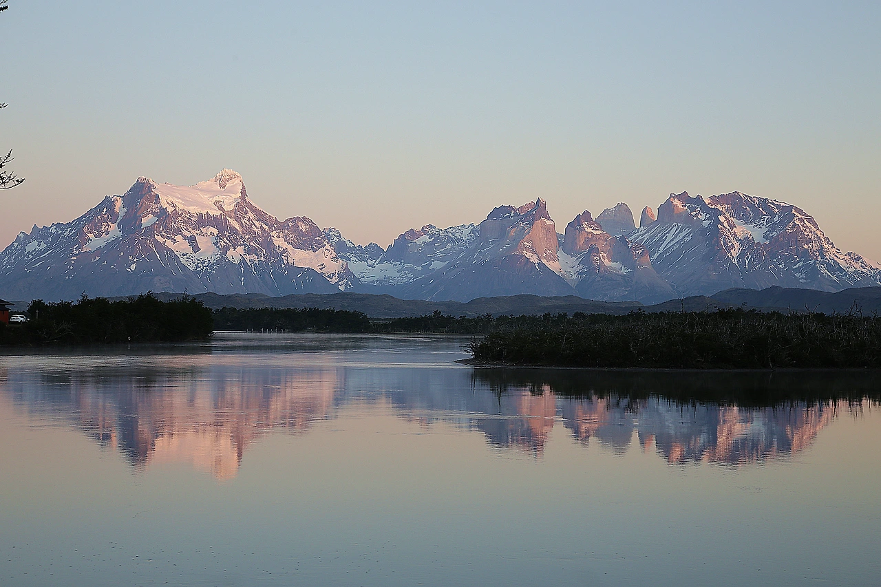 입국 심사 후 1시간 30분 정도 지나 칠레의 ‘창백하고 파란 탑' 토레스 델 파이네(Torres del Paine) 국립공원에 도착했다. 공원은 1,200만 년 전 화강암으로 형성된 3개의 파이네 산괴(山塊)로 구성되었다. 그러나 공원 내 숙소에서는 3,050m 파이네 그란데만 보인다.