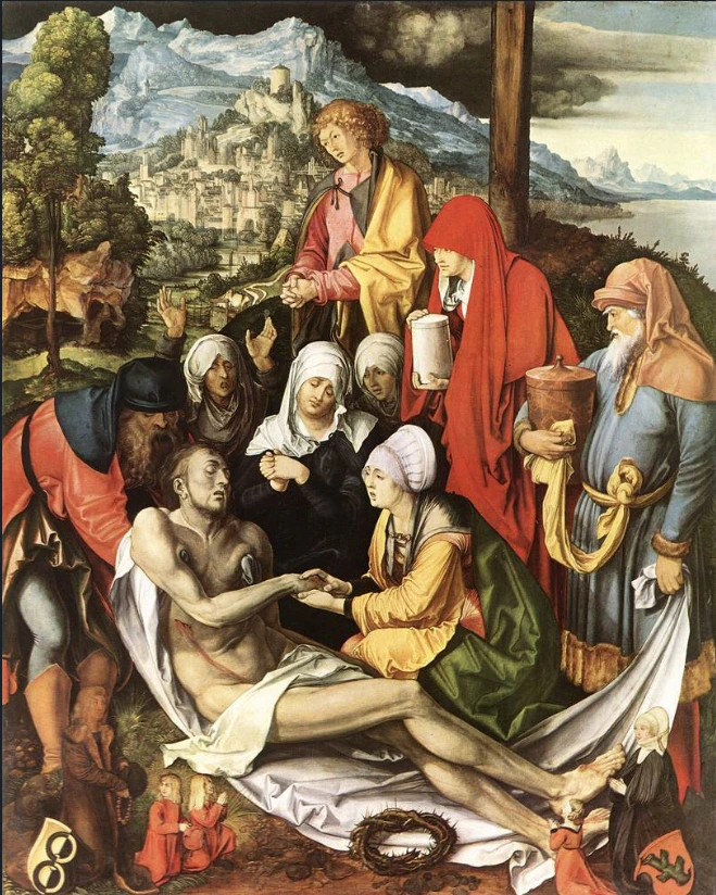 뒤러는 당시 64세쯤 되었을 조반니 벨리니와 친분을 맺었다. 베네치아 화풍을 세운 그의 제단화 색채에서 큰 영향을 받고 뉘른베르크로 돌아와 <죽은 그리스도를 애도함>을 그렸다. 1505년부터 1507년 2월까지 다시 베네치아에 머무르면서 연구를 계속했다. 데생 솜씨를 비롯해 절정의 역량을 갖추었음에도 그는 르네상스의 이상적이면서 자연스러운 미를 창조하고자 노력했다.