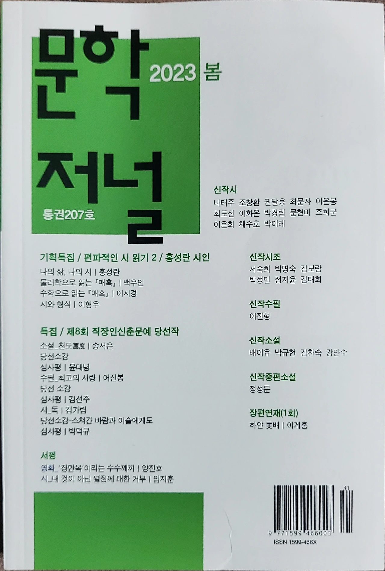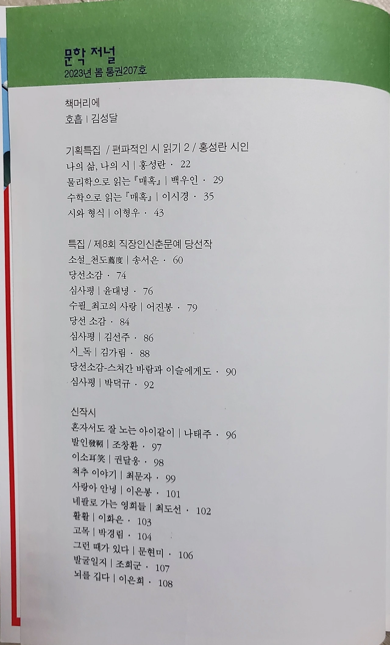 2023년 버킷리스트 중 하나를 오늘 지웠습니다. | 2023년 12월 4일 월요일 오늘 오후 5시 용산 육군회관에서 '문학저널 창작문학상'을 수상했습니다. 지난 《문학저널》 봄호에 실렸던 저의 詩 <뇌를